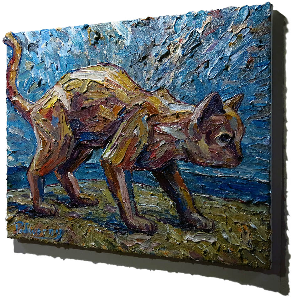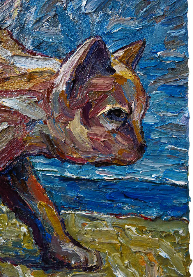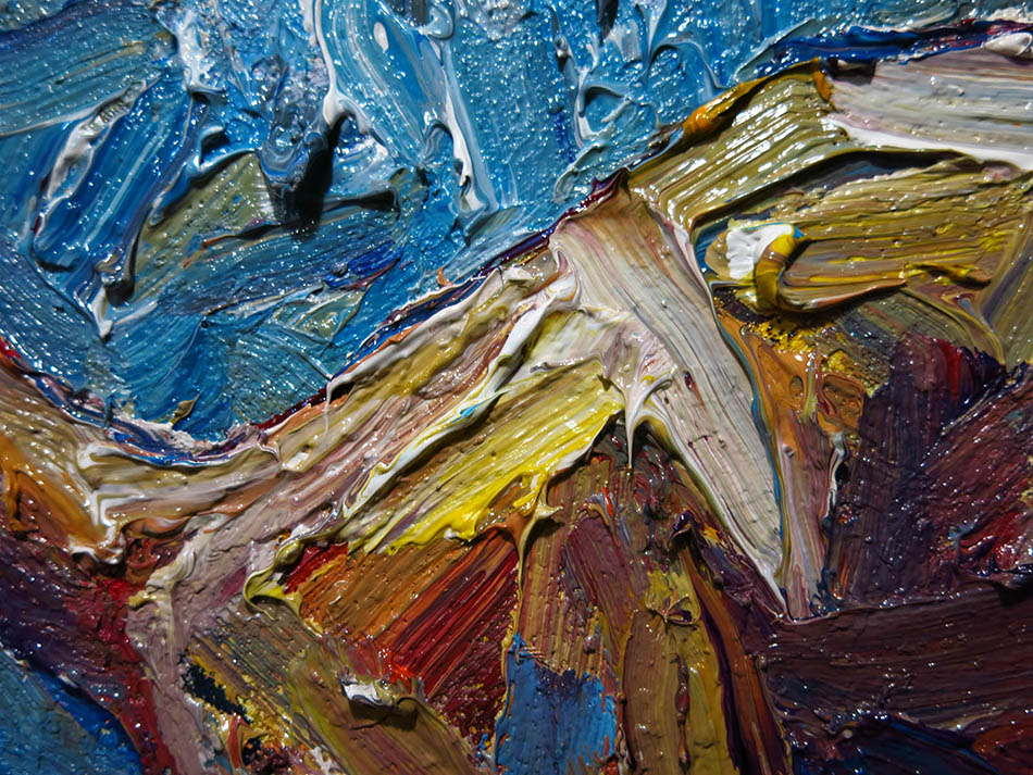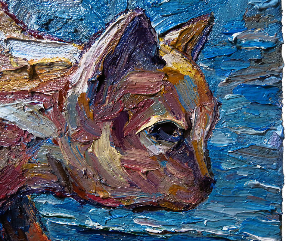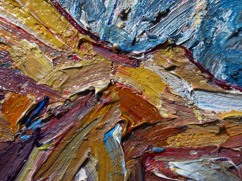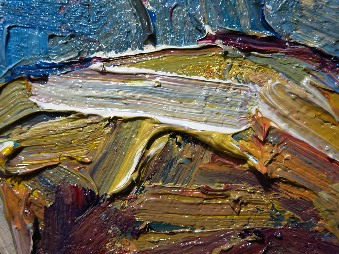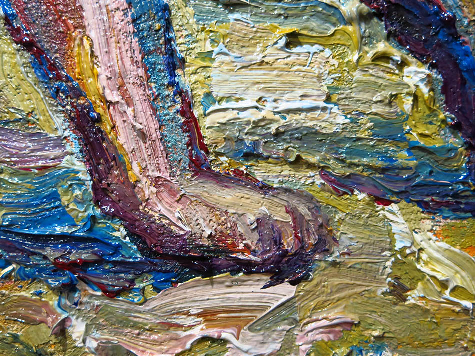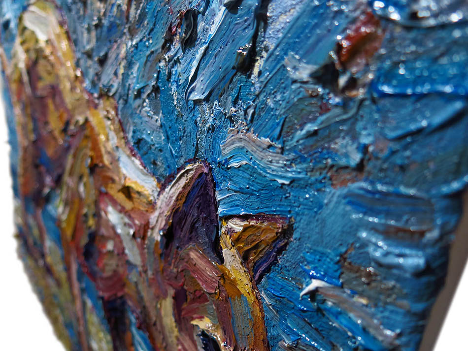 Oil Paint on canvas of 20 by 16 by 3/4 in., including hanging clip.