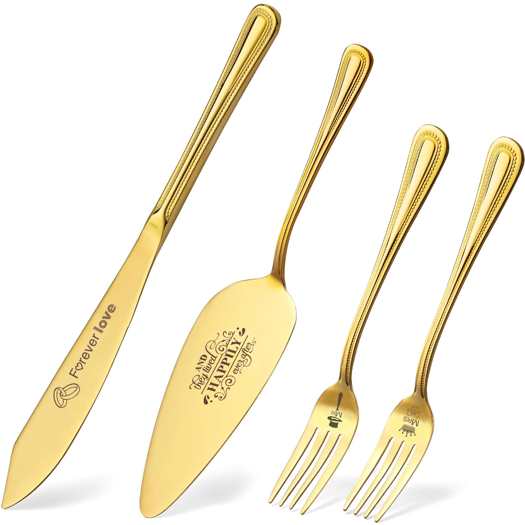 This beautiful and high quality wedding cake knife and server set is great for your special day. The wedding cake knife is made of stainless steel, This cake cutting set is designed to be timeless and classic, and it is sure to add a touch of elegance to your wedding day. The server set includes a cake server , a cake knife and 2 Cake fork, both of which are pretty balanced and designed for easy use. The cake knife is sharp and precise, making it easy to cut through even the thickest cake. This wedding cake knife and server set is an excellent choice for any wedding or special occasion. It is sure to make an impression on your guests and will help to make your wedding day even more memorable.