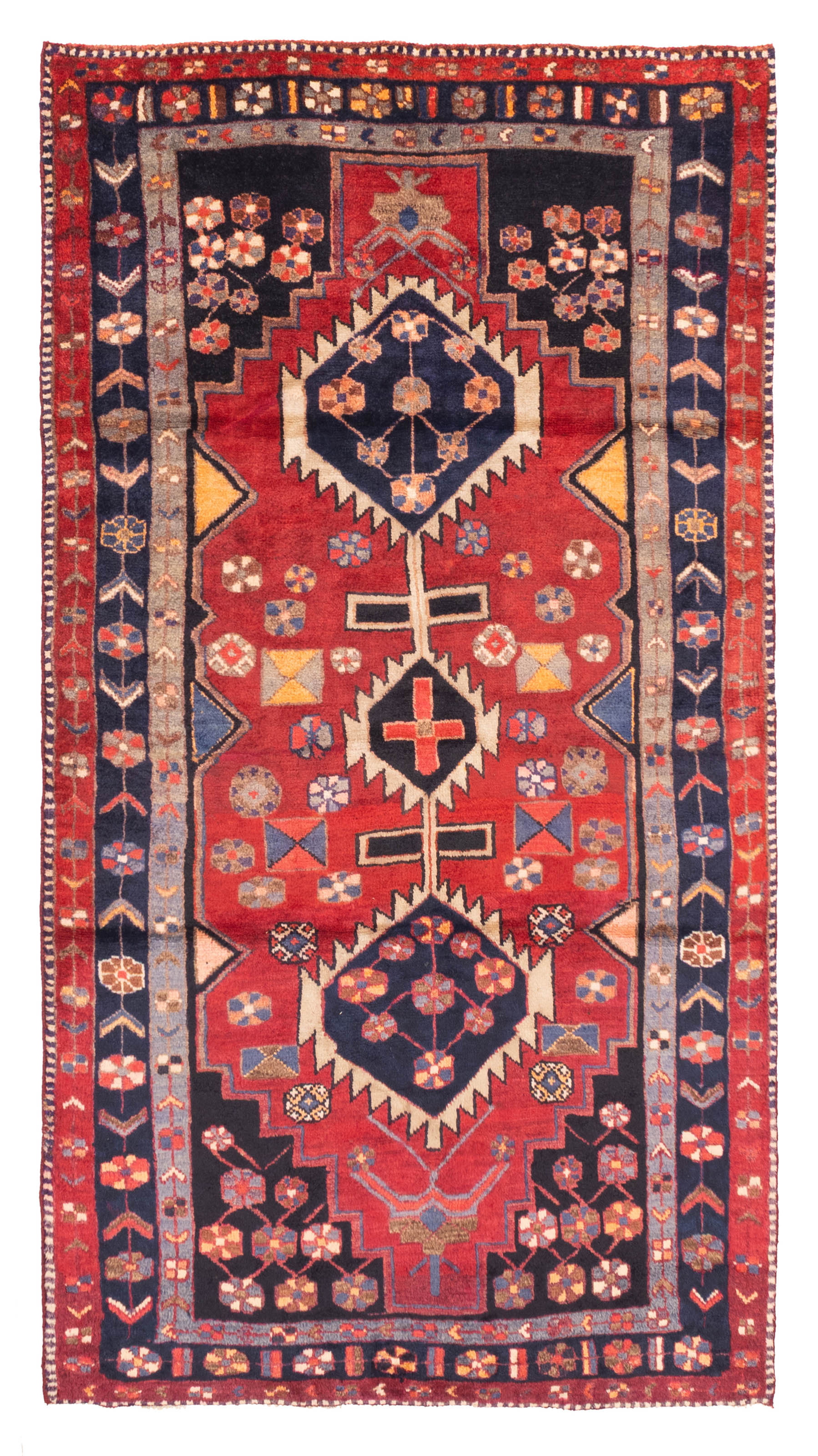 Splendid piece of work that is woven in Turkey with a re-interpretation of village Persian designs This Persian Style rug is rendered in no way inferior by the fact that the style is copied from the geometric design of the Persian Persian, Persian Ardabil and Persian Meshkin rug Soft, chromatic and grounding, this Persian Style rug brings rich pile and depth of color into rooms through its lustrous wool Traditional, Tribal style rug with Black, Dark Navy, Grey, Light Khaki, Light Orange, Red accent colors Imported from Turkey and crafted using the finest weaving techniques Hand-knotted and constructed from 100% Wool with 100% Cotton foundation 4-Feet 5-Inch by 8-Feet 2-Inch (134cm x 250cm)