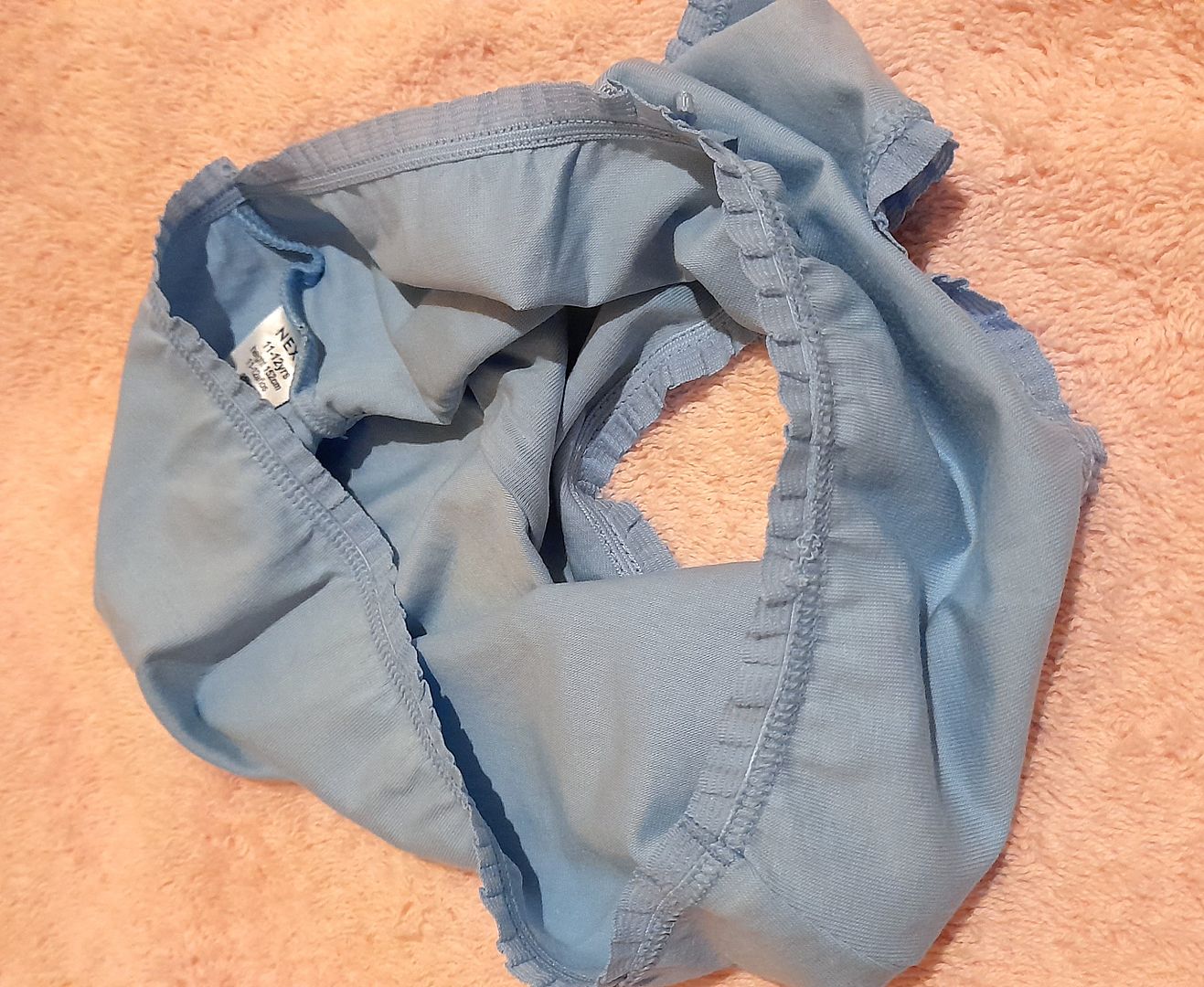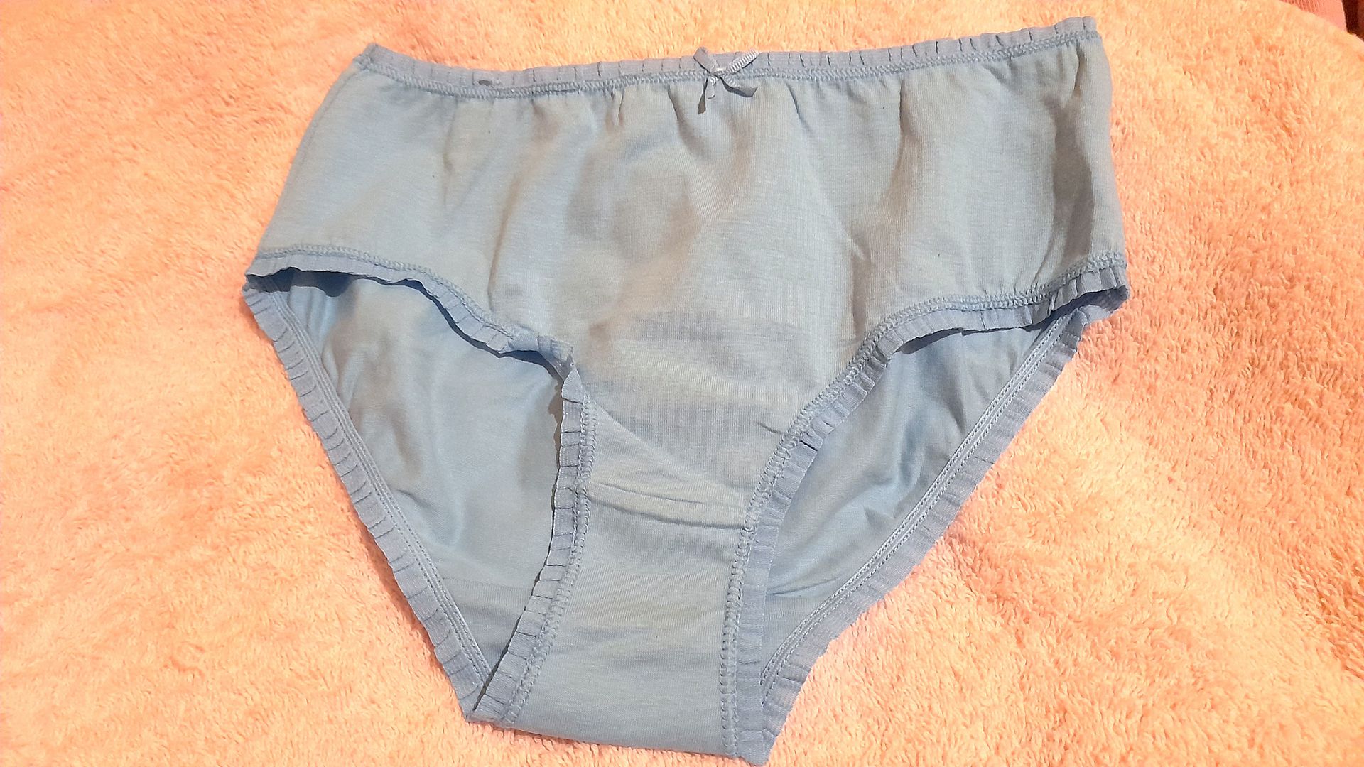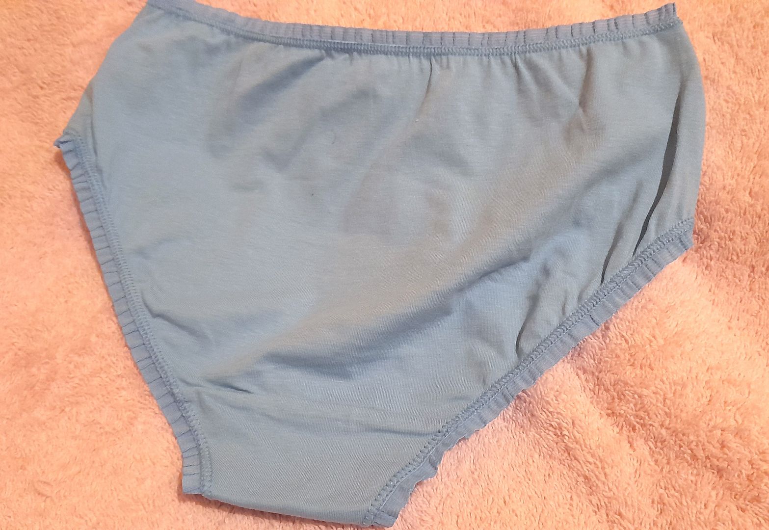 Girls 11-12yrs pretty brief knickers. Pants are Blue with pretty frilled lace