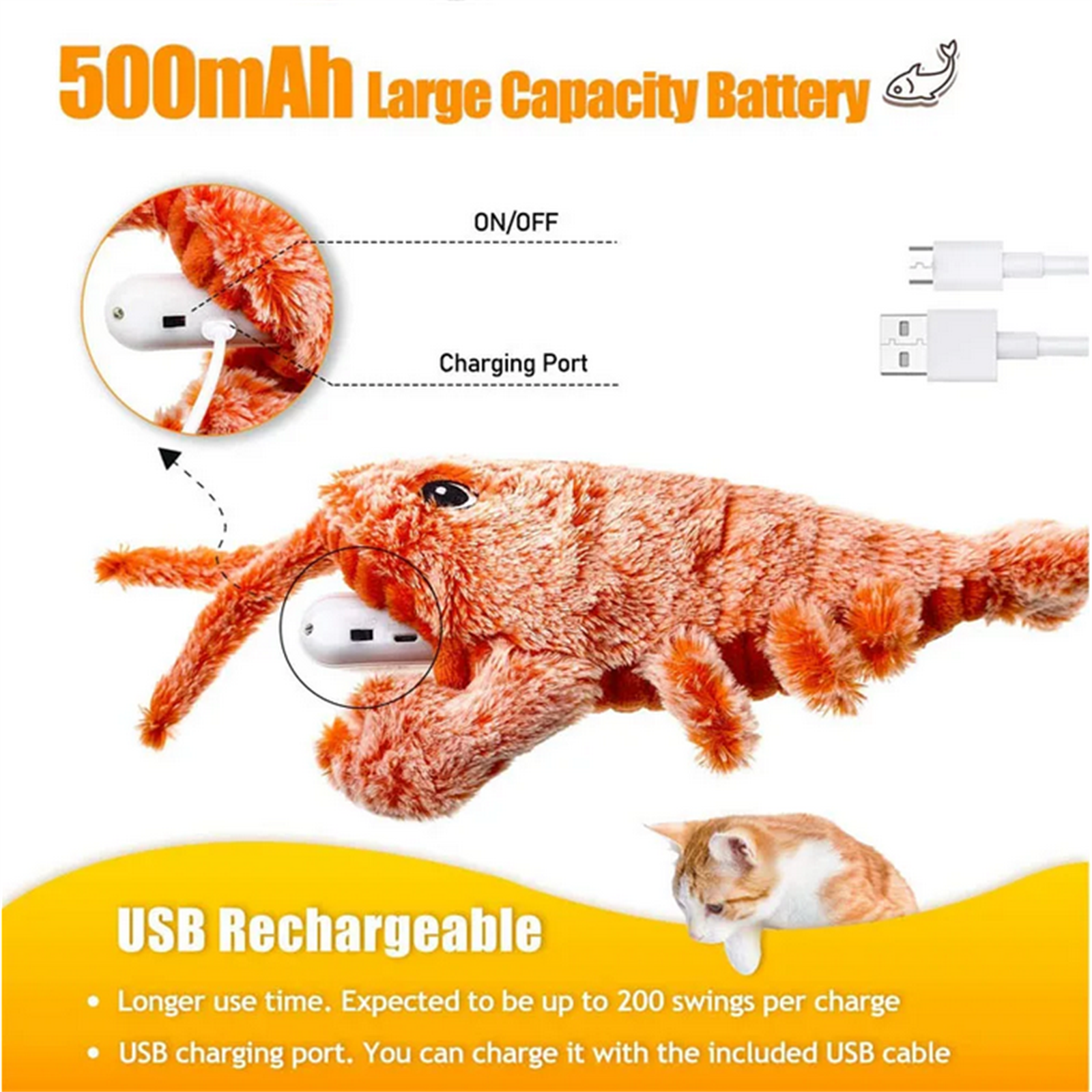 2. Vibration sensing paw activation: After jumping for a period of time, the shrimp enters a standby and power-saving state, Tap and touch to activate the tail swing again