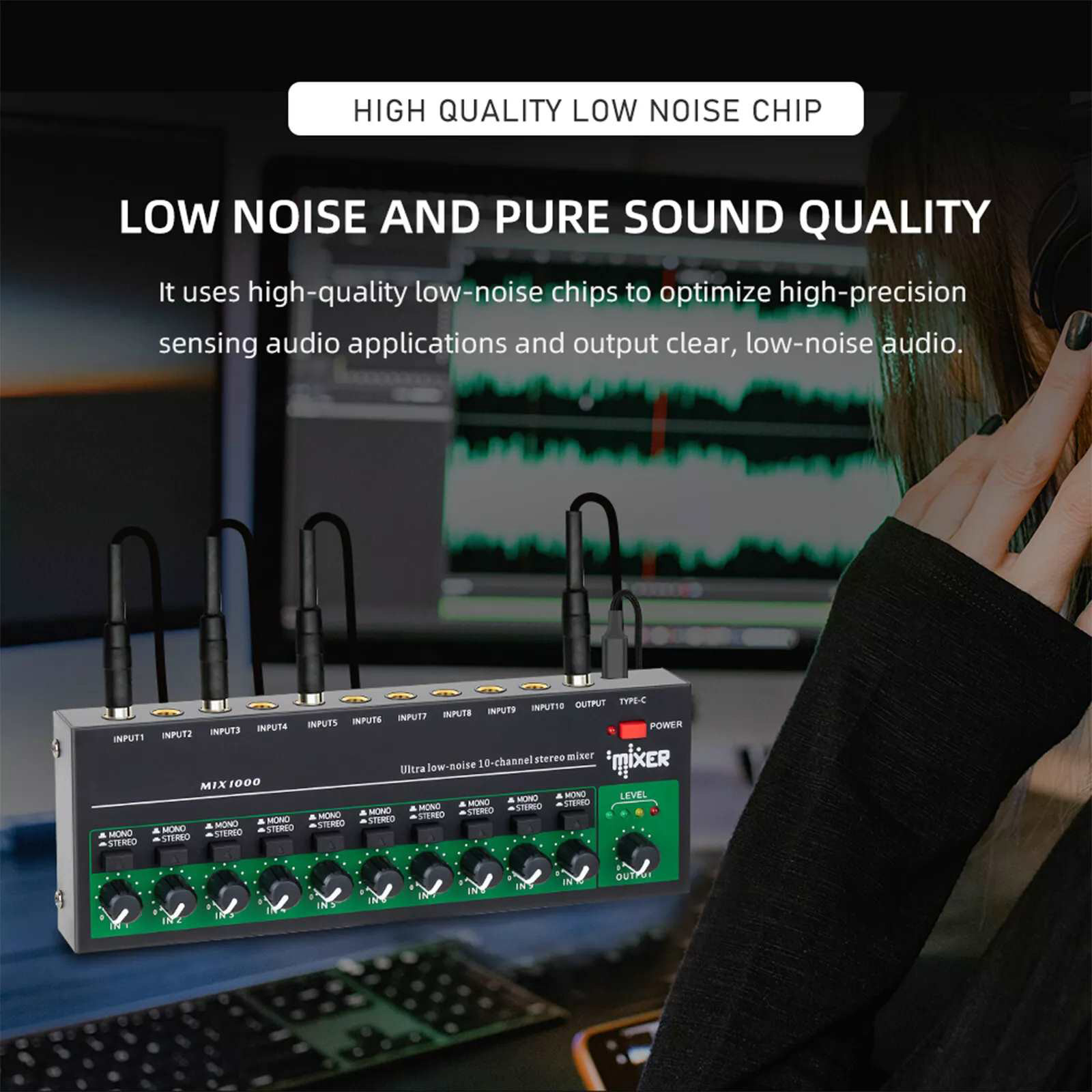 Low Noise audio output: The mixer has a high quality low noise chip, optimized for high audio applications. It provides clear, low-noise audio output that significantly enhances the user's listening experience and makes every listening a pleasure.