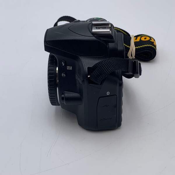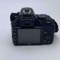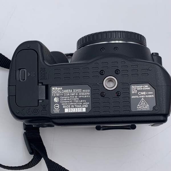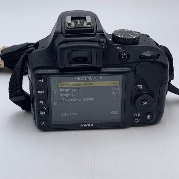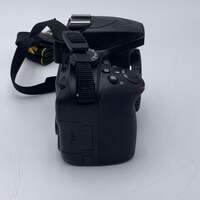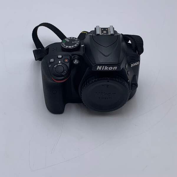 This Nikon D3400 digital camera is offered in uséd condition and comes in black with a Nikon 18-55mm lens. The lens is in excellent condition and is clear, free from scratches, smudges, or other imperfections. The flash is functional and working as intended for low-light photography.