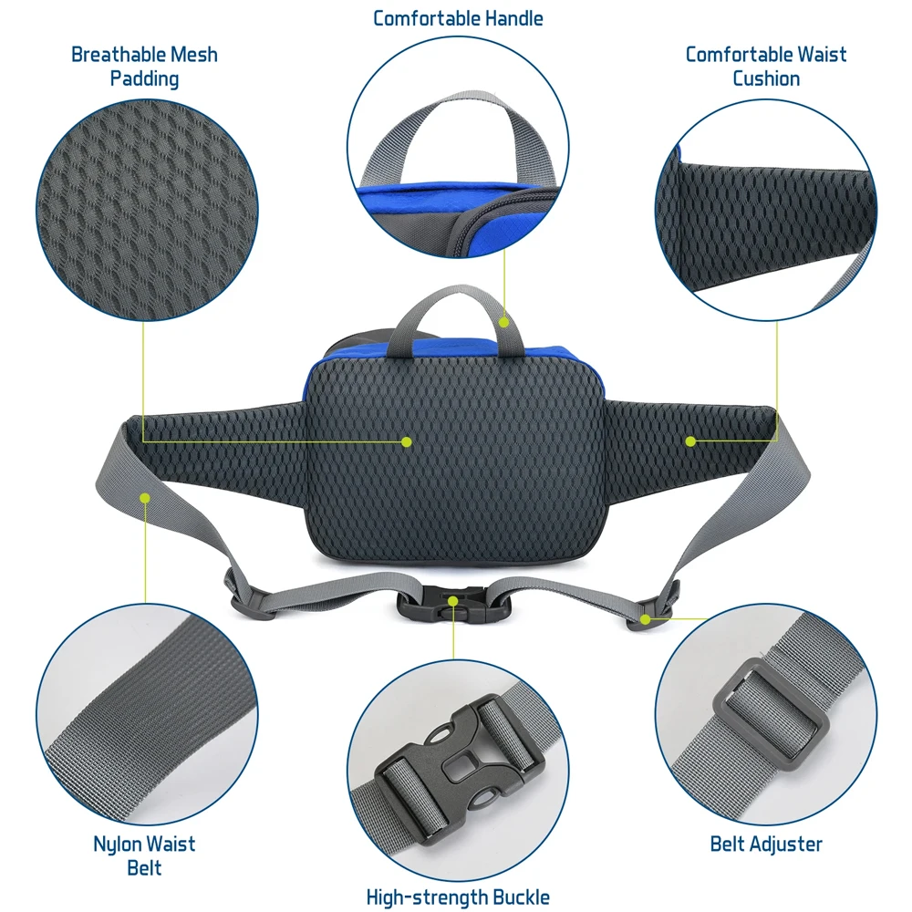 4. Adjustable Waist Belt: Hiking waist pack with water bottle with adjustable waist belt,allowing users to customize the waist pack,It can be adjusted to a comfortable and suitable size according to your waist circumference, allowing you to reduce the feeling of weight and discomfort,sturdy buckle makes it easy to take on and off.