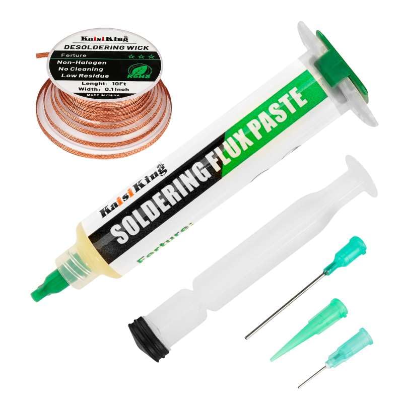 Kaisiking Solder Flux Solder Wick for Electronics Soldering, No Clean Soldering Flux for PCB, SMD & DIY Projects, 0.1" Braided Copper Desoldering Wick & 10cc Flux Paste