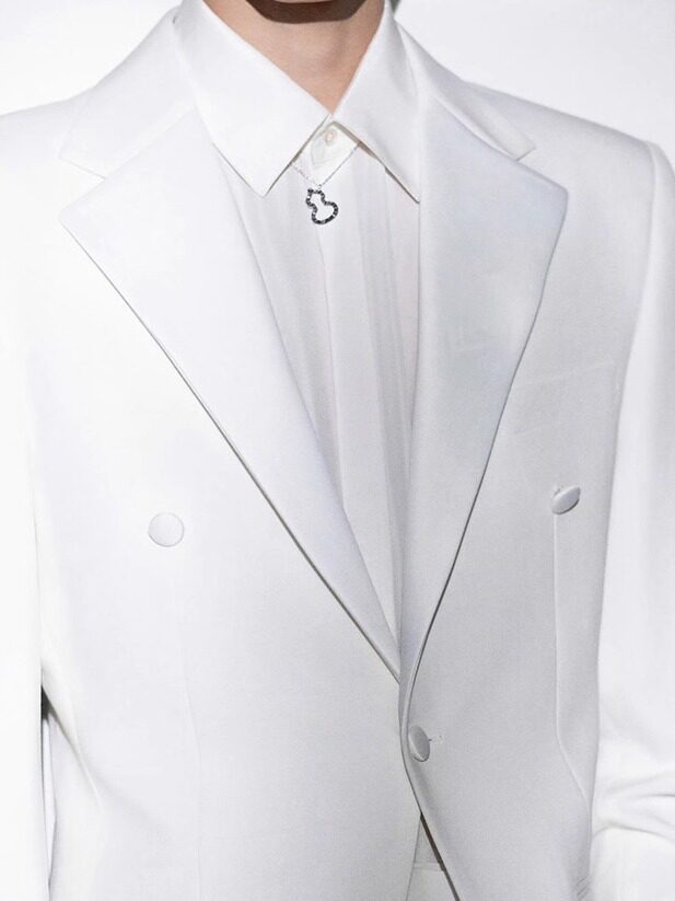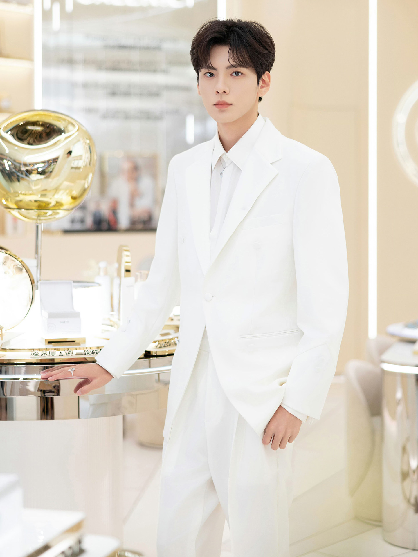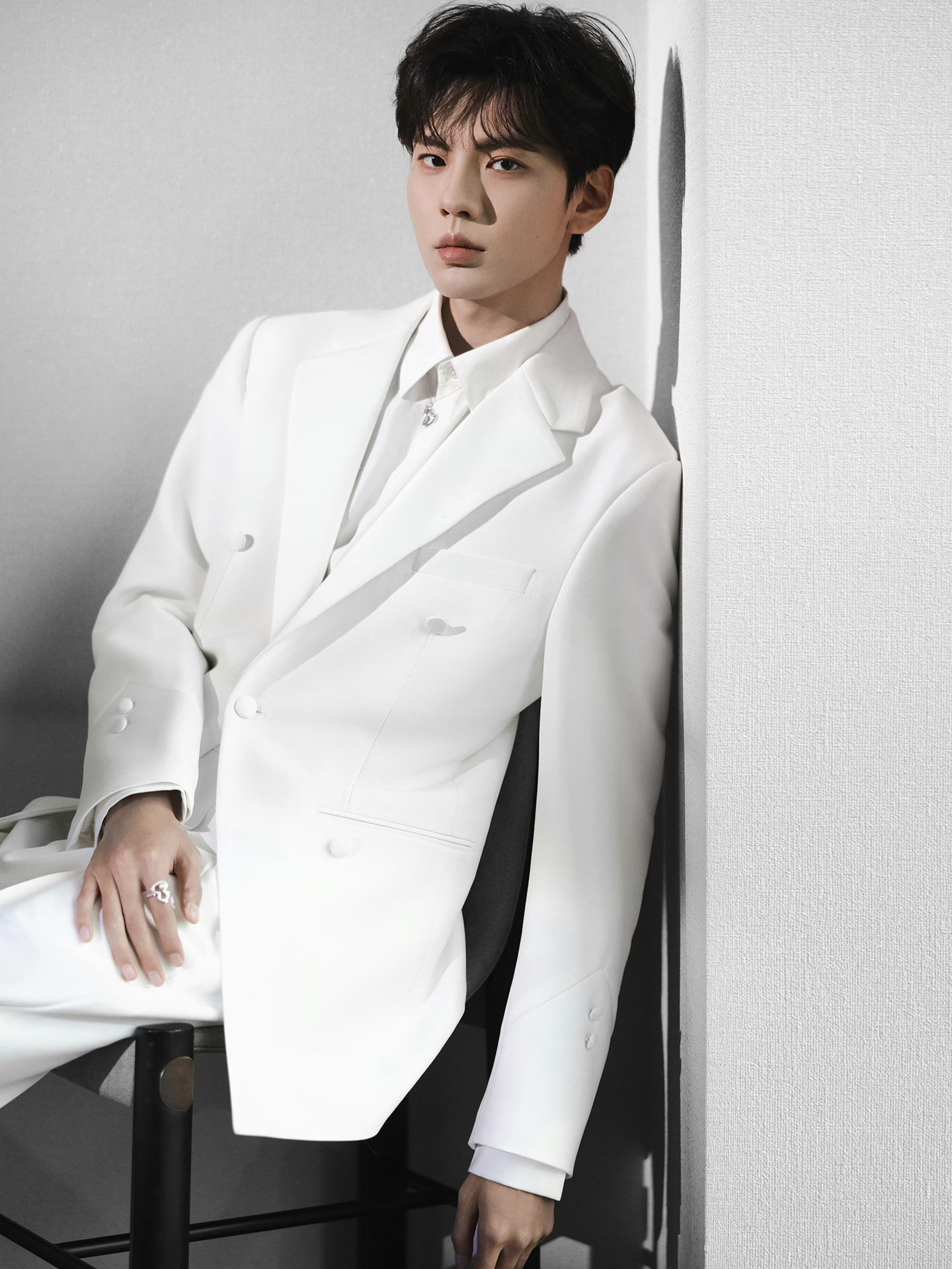 Men's One Button White Suit Set Slim Fit Coat Business Casual Straight Leg Pants