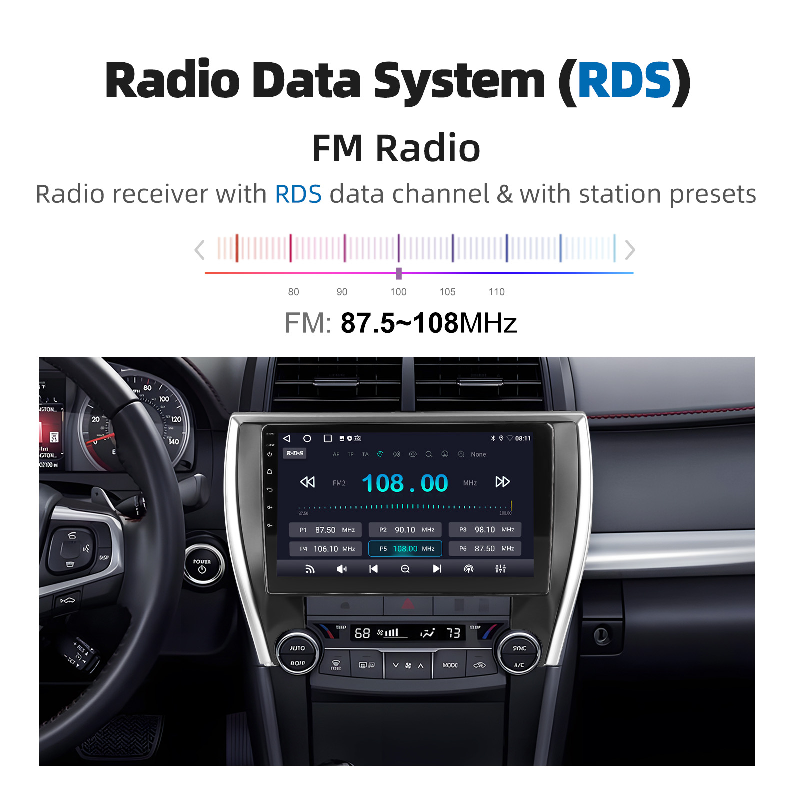 RDS/FM Radio & Bluetooth & ASP Sound: Supports Bluetooth 4.1, with built-in microphone so you can make hands-free calls while driving. Support access to phone book, music playback interface, etc. RDS supported. You can save 18 FM radio stations. Built-in ASP chip. Supports 32-band EQ setting, which can be adjusted according to your personal preference. Which is very similar to your original sound. 4 x 45W amplifier, surround sound and subwoofer output