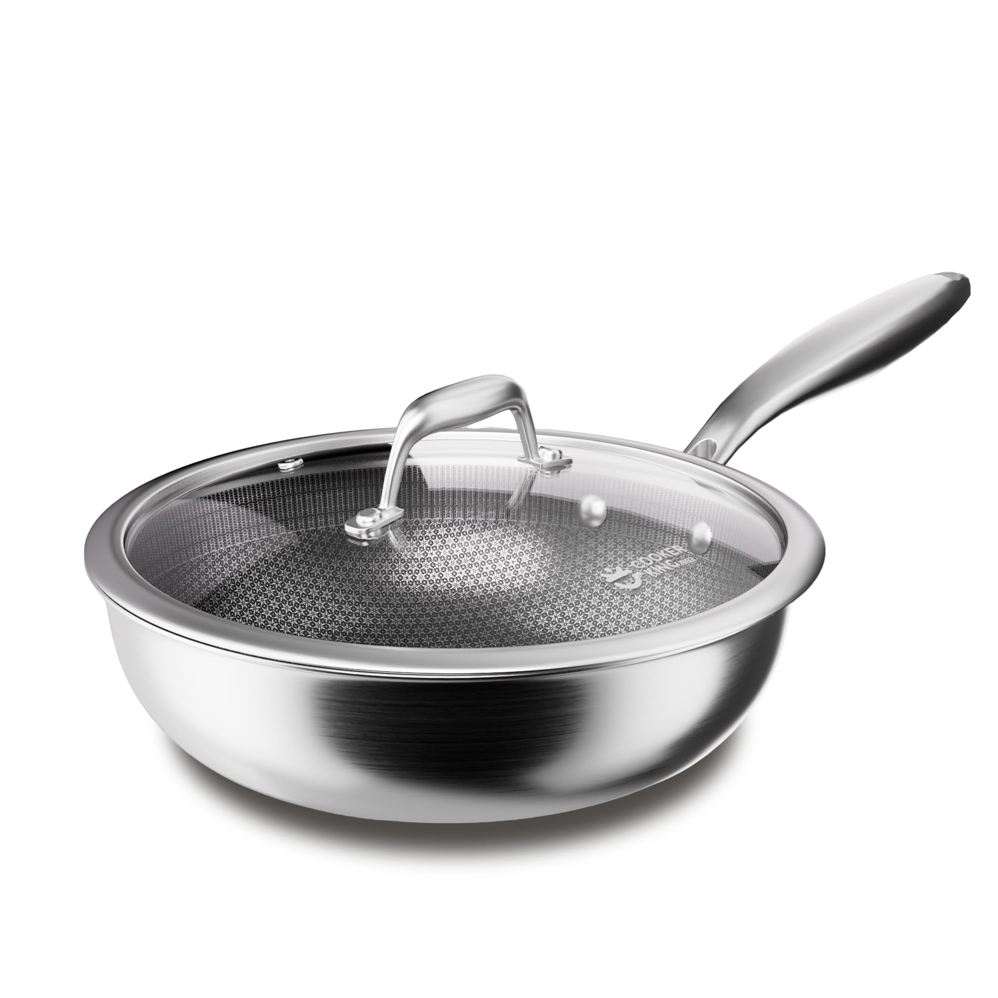 【HYBRID TECHNOLOGY & TOXIN-FREE】: Combines a laser-etched stainless steel surface with a PFOA-free coating for professional searing and effortless release. Perfect for delicate eggs and fish in this wok pan over low to medium heat.