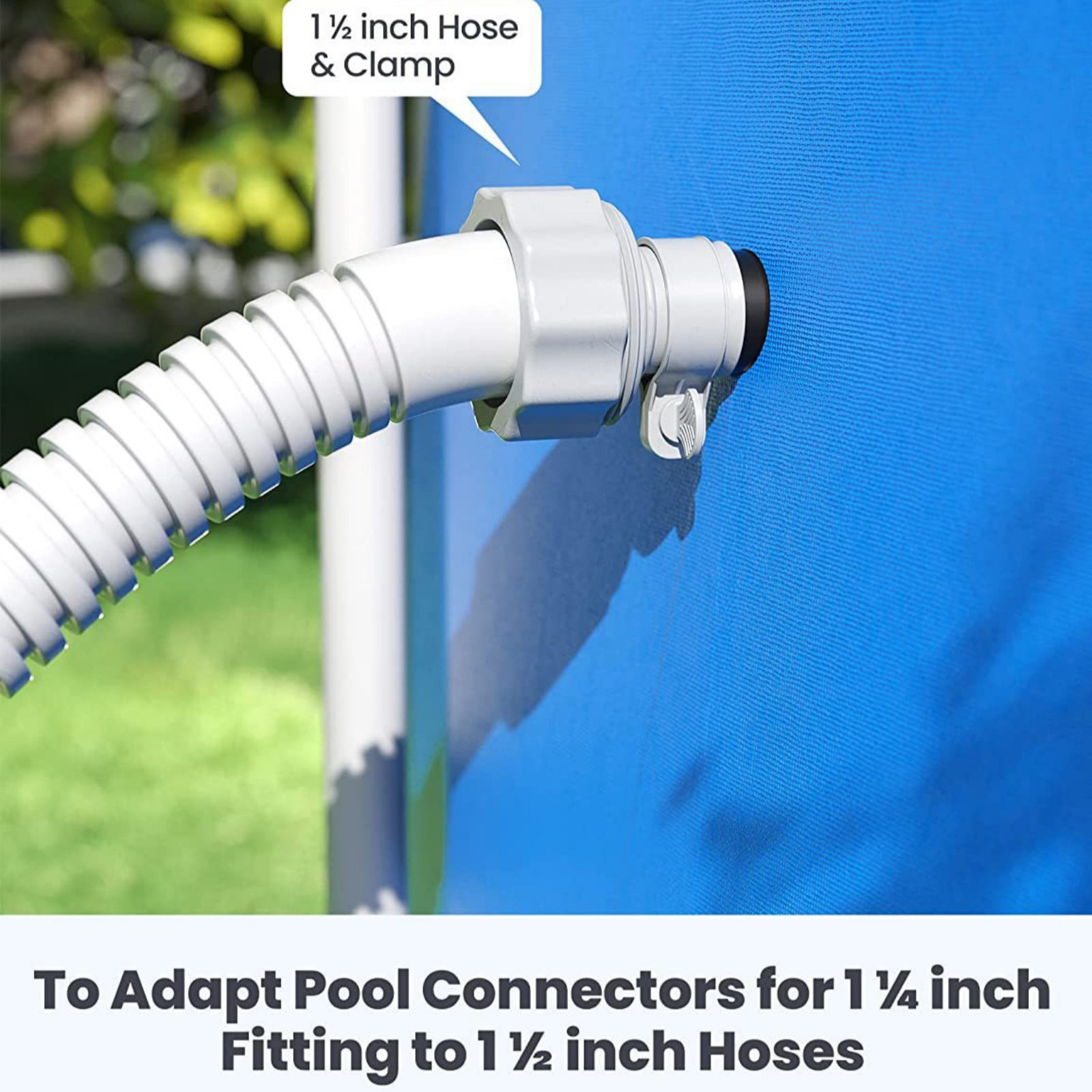 3. Easy To Use: Small End With Clamp Attach To 1.25" Pool Walls. The Threaded End Attach To 1.5" Hoses, Simply Screw Them On.