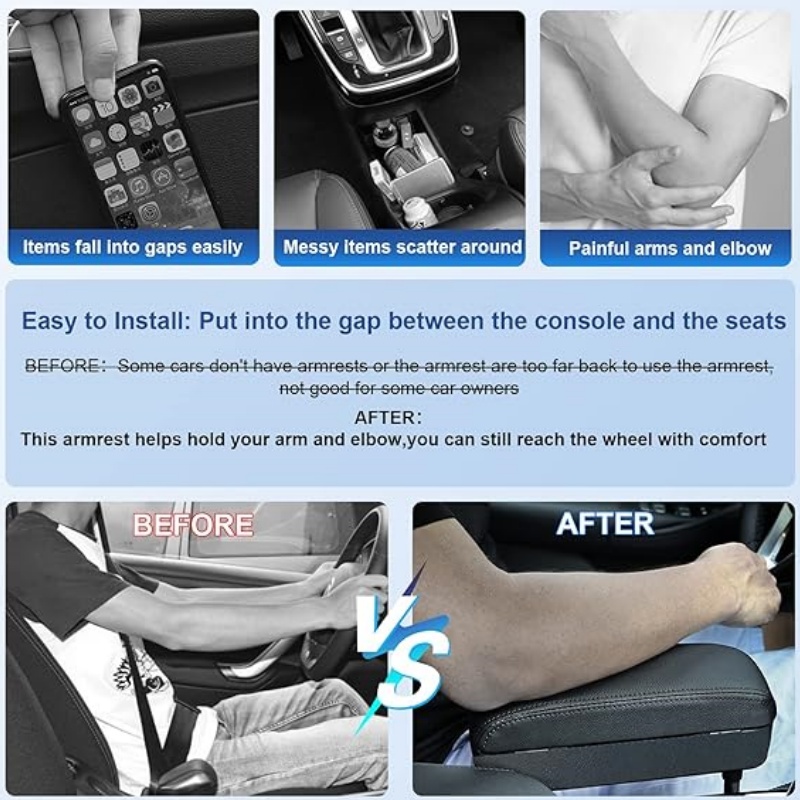 • Add Storage: Our armrest support comes with a compartment storage box that has enough space to put your phone and other small items in as you drive