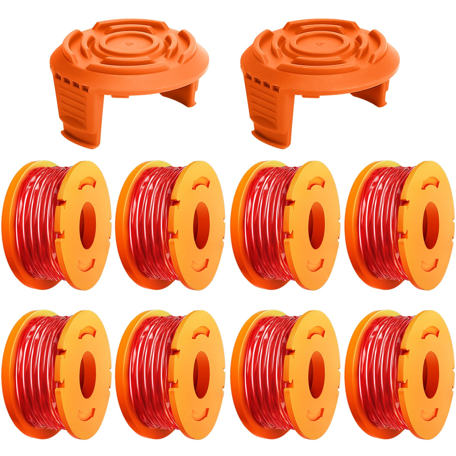 WA0010 Replacement Trimmer Line, Aerodynamic shape allows less drag for more efficient cuts.Pliable and flexible allowing for the line to stretch and cushion on impact with hard surfaces.Premium 10ft./ 0.065 inch Edger Spool Line and Cap: 8 pack of 10ft each twisted copolymer nylon resin and synthetic trimmer/edger line, 2 Pack Trimmer Cap.Good value for money,easy for replacement.