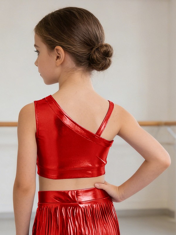 Kids Girls Tops Hip-Hop Dancewear Shoulder Crop Top Theme Party Dance Disco