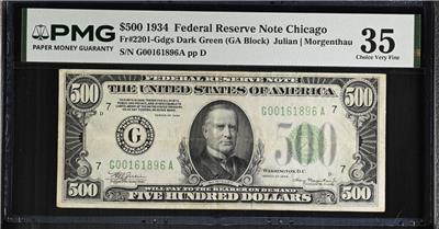 1934 $500 Federal Reserve Note PMG 35 Very Fine.