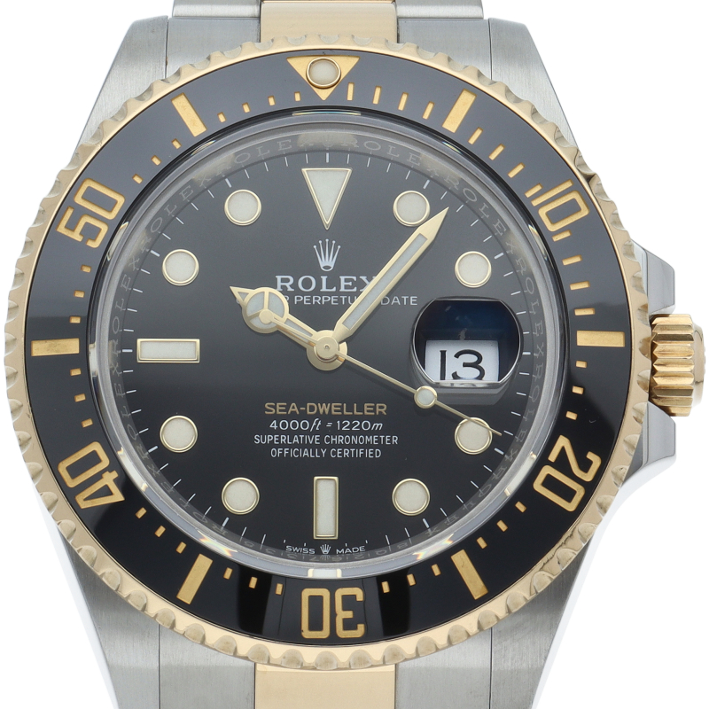 | This is the first Rolesor model to use K18 yellow gold in the Sea-Dweller collection, which was announced at Baselworld in 2019. The 1.7" diameter case is equipped with the in-house developed caliber 3235, which has 14 patents, is equipped with the newly developed Chronergy escapement, and has a long power reserve of 70 hours. |