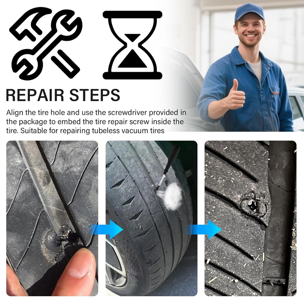 100PCS Car Vacuum Tire Repair Nail Rubber Screw Nails+ Screwdriver Tool Set w/Box