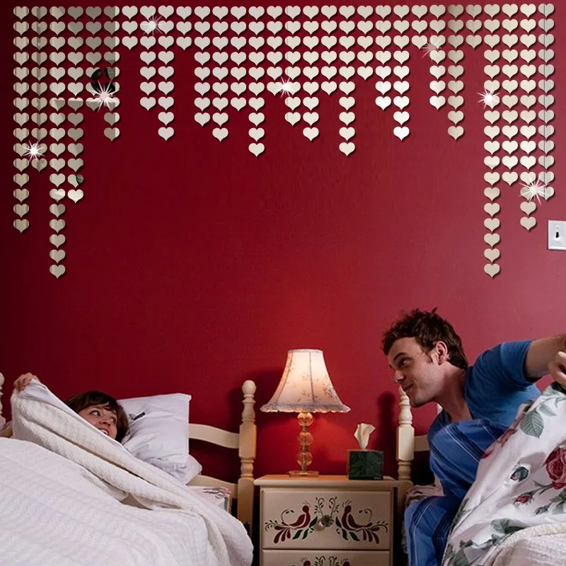 100pcs Acrylic Mirror Circle square Wall Sticker Bedroom Wedding Decoration Heart shaped raindrops Art Wall Decals Home Decor