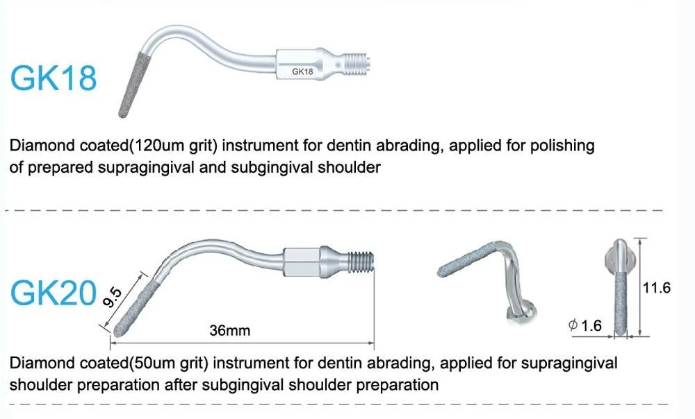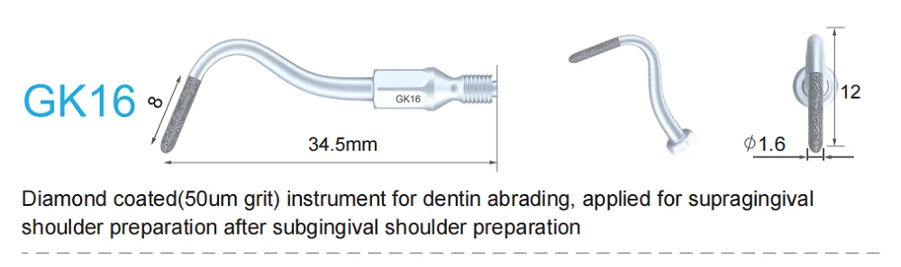 GK18: Diamond coated(120um grit) instrument for dentin abrading, applied for polishing of prepared supragingival and subgingival shoulder