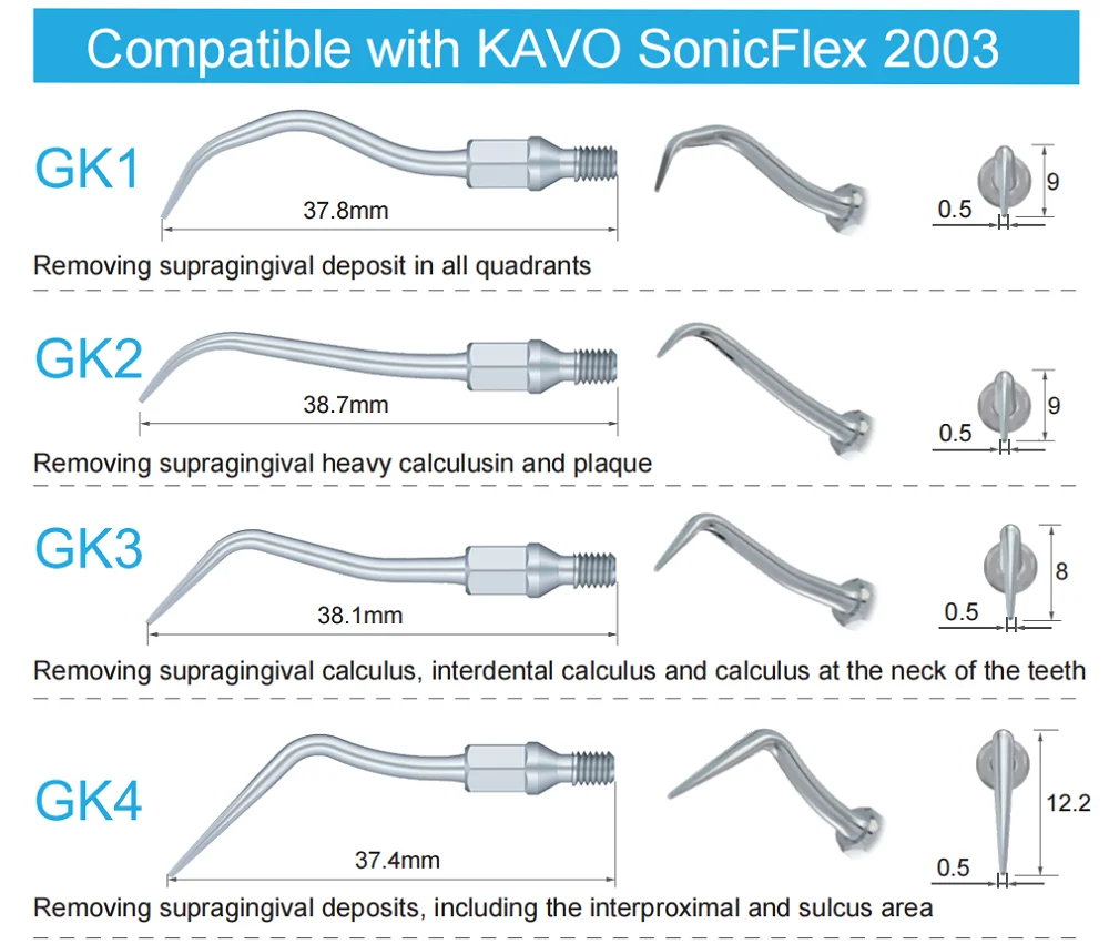 1pc Dental Ultrasonic Scaler Scaling Tips for KAVO SonicFlex Scaler Handpiece GK1 GK2 GK4 GK6 GK12 GK16 GK18 GK20 GK21 GK67