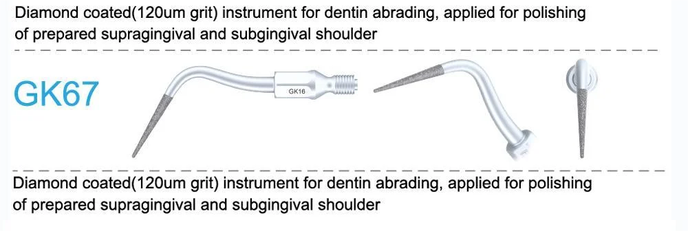 GK67: Diamond coated(120um grit) instrument for dentin abrading, applied for polishing of prepared supragingival and subgingival shoulder