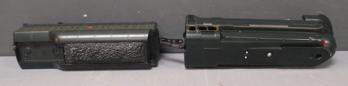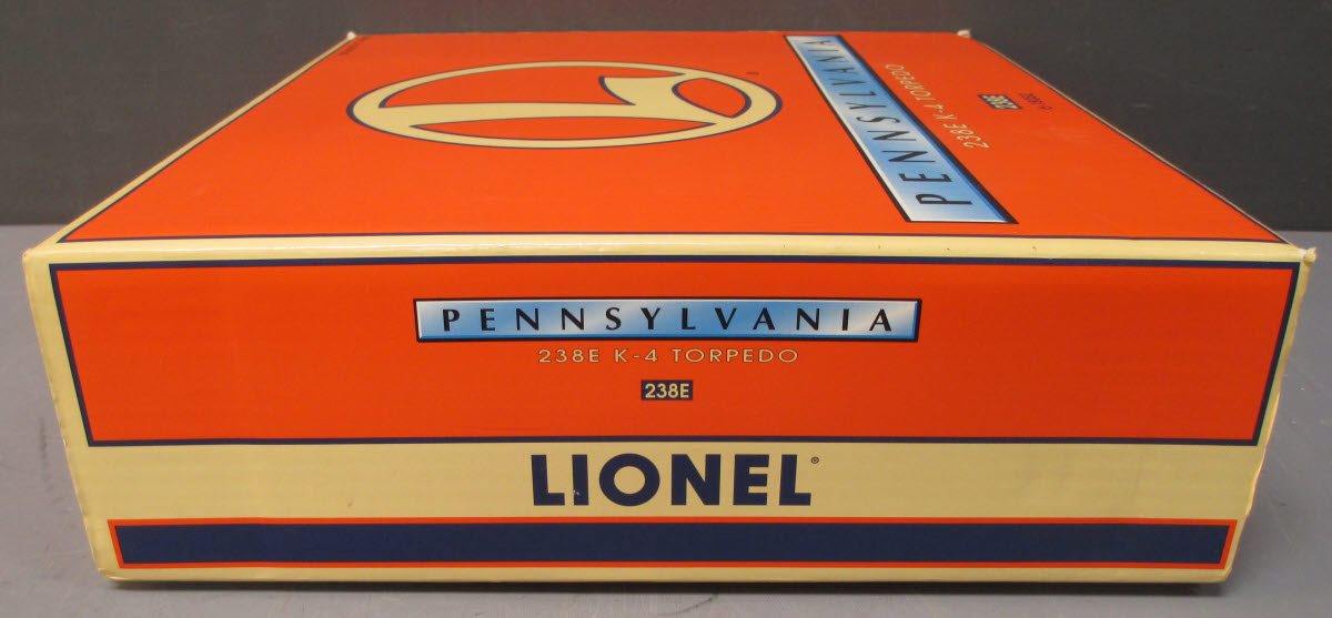Here is a Lionel 6-18052 O Gauge Pennsylvania K-4 Torpedo Steam Locomotive & Tender #238E from 1997. This is a Command-Equipped engine, and it features Railsounds, all-metal construction, smoke, directional lighting, and an ElectroCoupler on the tender.