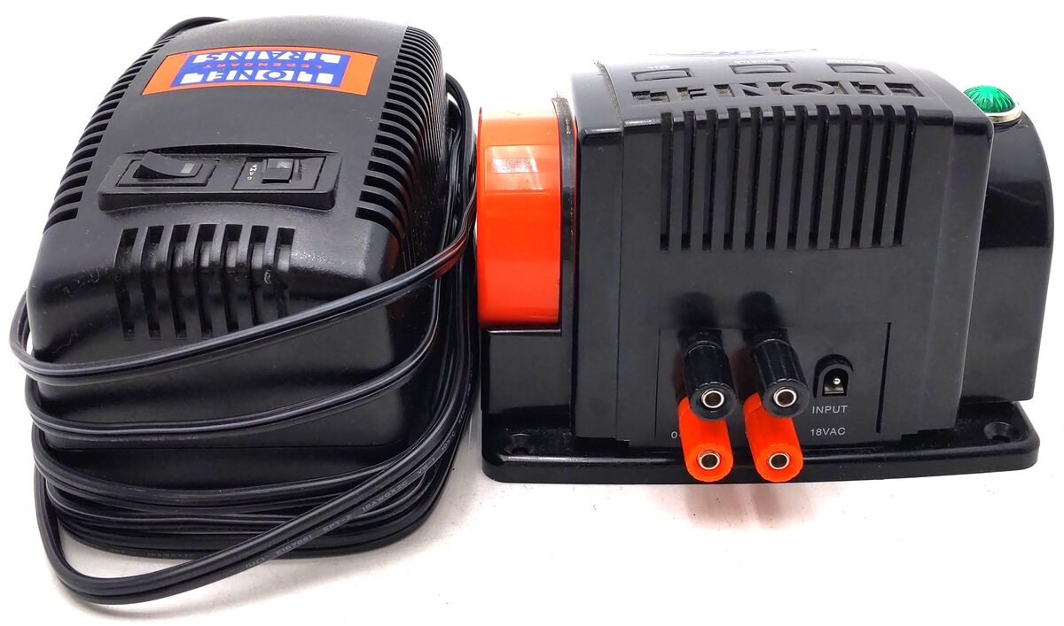 Here is a Lionel 6-37947 O 80 Watt Transformer. Introducing the ideal transformer for operating trains and accessories on expanding and medium-size layouts! From the Postwar-inspired styling of the controller, to the mighty PowerHouse power supply that provides a circuit breaker and on/off switch, this transformer has all the power you need, plus electronic overcurrent protection to help save your sensitive electronics in the event of a short circuit. Use the throttle lever to control speed and power. Operate your favorite features with the bell, whistle/horn, and direction buttons. Two outputs are available on the rear of the unit. A 0-18 volt variable AC output serves as you main track power source. The other programmable AC output is perfect for accessory operation from the same transformer. On the accessory output, simply set the accessory voltage to your desired level for continuous operation until you turn the unit off, completely independent of the train’s operation.