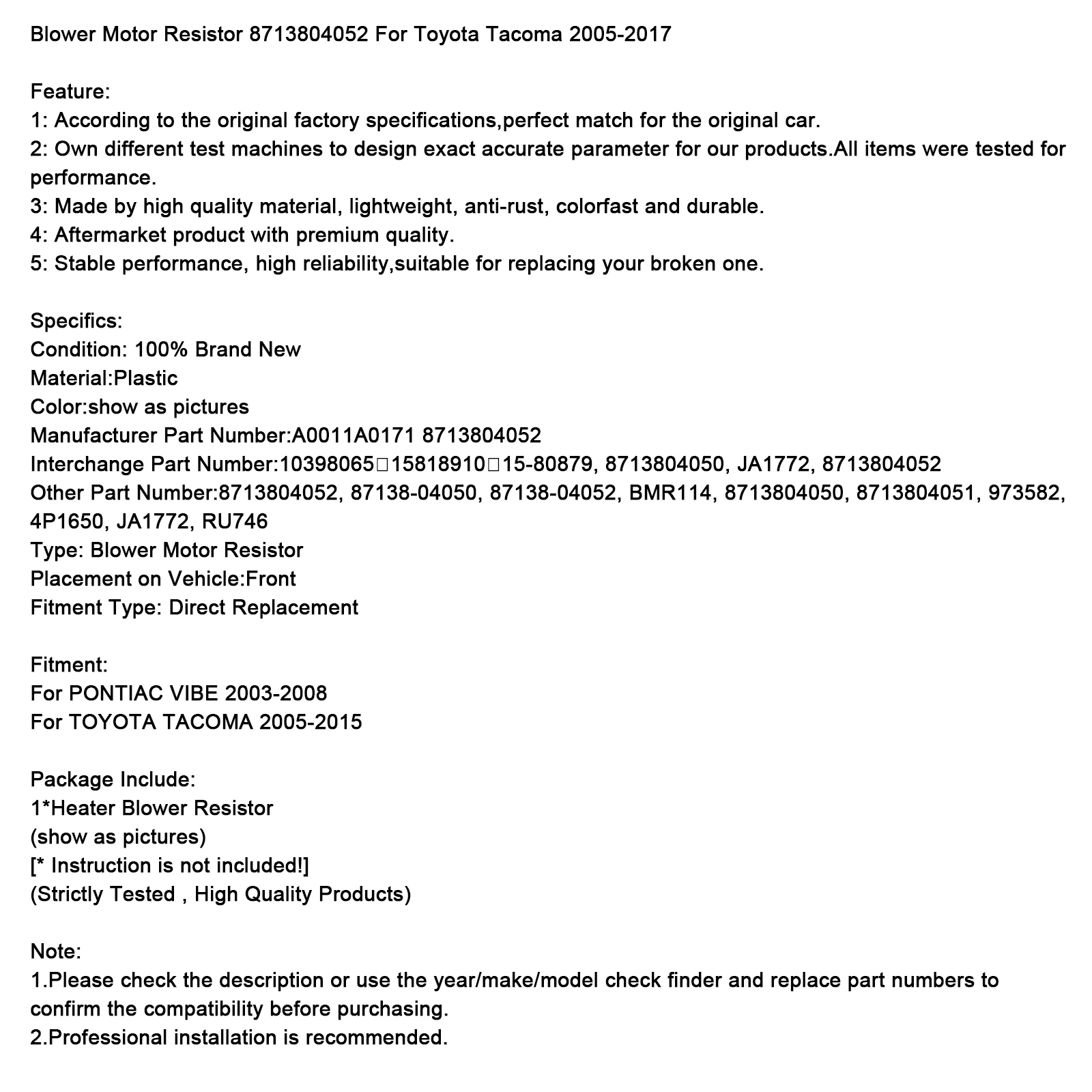 Other Part Number:8713804052, 87138-04050, 87138-04052, BMR114, 8713804050, 8713804051, 973582, 4P1650, JA1772, RU746