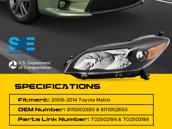 Wide Compatibility: Compatible with 2009-2014 Toyota Matrix, this headlight pair by VRC improves visibility and safety during nighttime and foggy drives