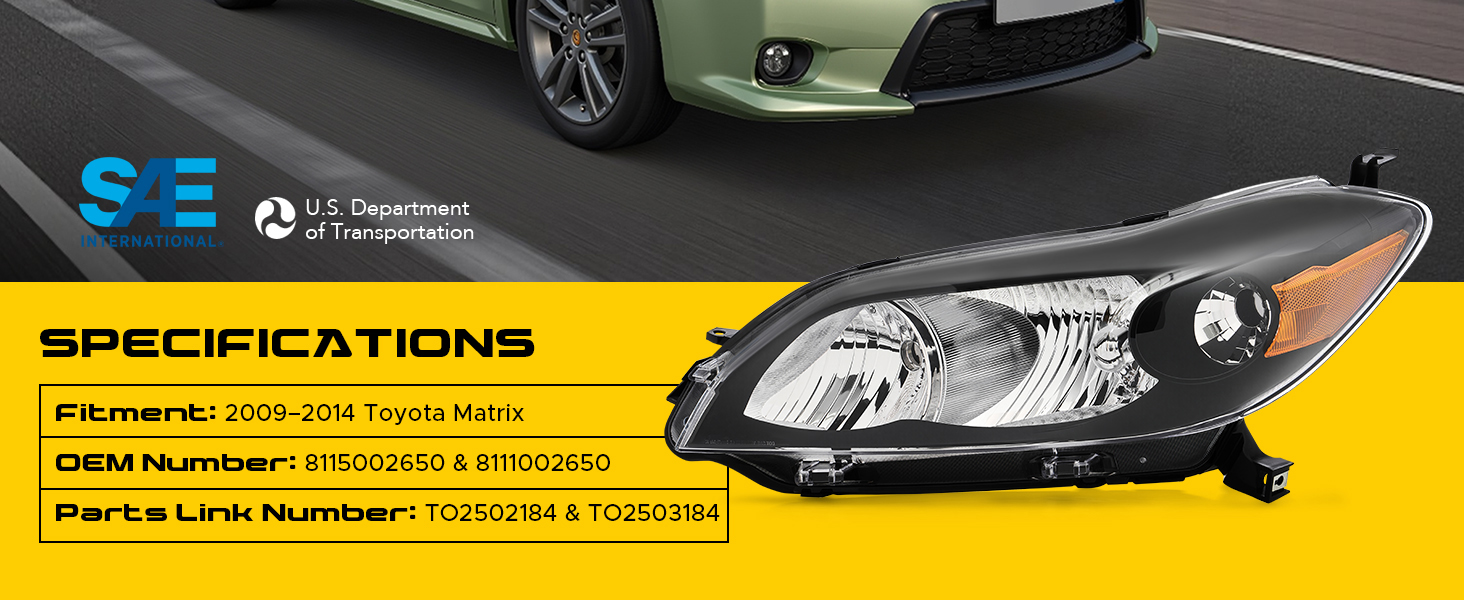 Enhance your driving safety and vehicle appearance with VRC's headlight assemblies. Compatible with 2009-2014 Toyota Matrix, this headlight pair installs easily into your vehicle's factory sockets with no modifications needed. Compliant with DOT and SAE standards and made from durable materials, these front lamps provide long-lasting performance. The polycarbonate lenses offer excellent light transmittance, helping you drive safely in dark, foggy, or rainy conditions.