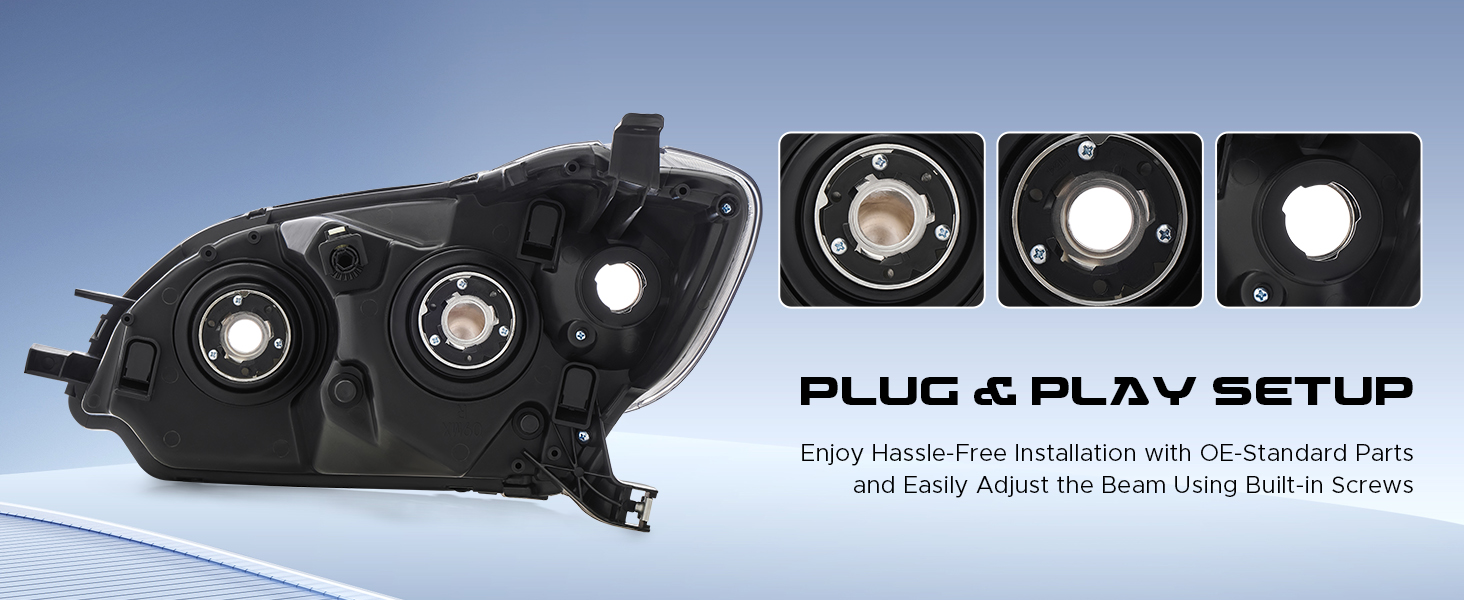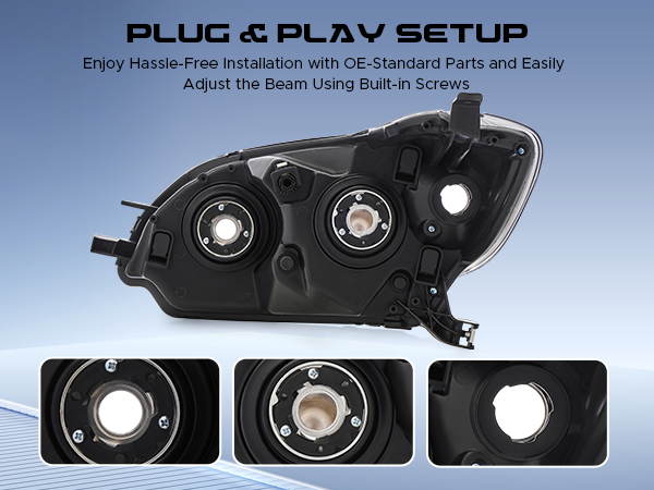 Plug & Play: Our OE-standard front lights fit directly into your vehicle's original factory sockets with no modifications needed. Adjust the beam angle effortlessly with the built-in screws for the perfect alignment