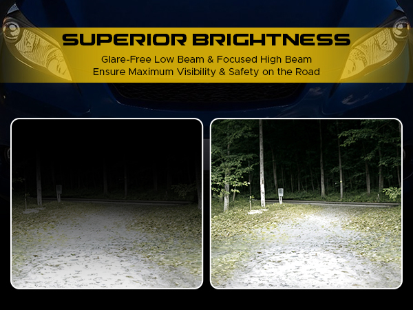 Brighter & Clearer Vision: Enjoy enhanced visibility with high-transmittance polycarbonate lenses. Our headlight set maximizes beam output, making road markings, signs, and potential hazards easier to spot