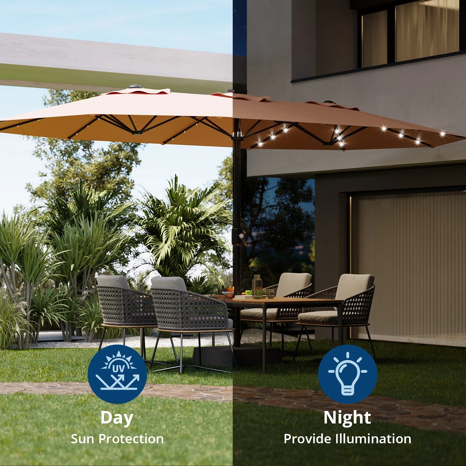 - 【High-Quality Fabric】 - Our 15 ft rectangular outdoor patio umbrella is crafted from premium polyester fabric, offering superior UV protection and water resistance. Three top vents improve airflow while reducing the risk of tipping in windy weather. Easy wiping after rain reduces cleaning burden, ensuring long-lasting vibrant colors that keep your umbrella outdoor patio looking fresh and stylish for long time.