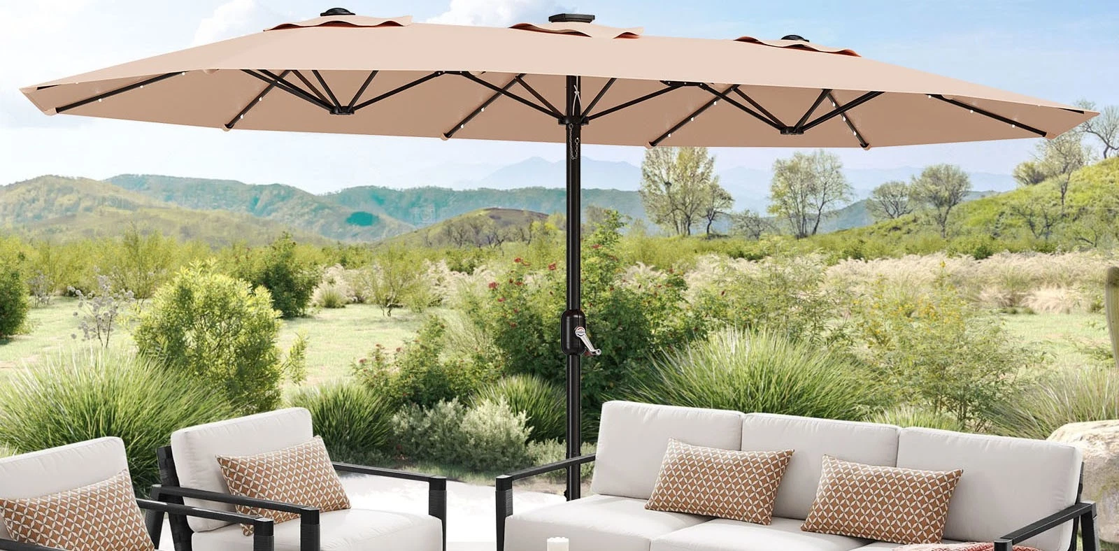 - 【Extra Large Shading Area】- Create a comfortable outdoor oasis with our 15 ft x 9 ft large outdoor umbrella,canopy offering up to 135 sq ft of shade. Whether placed beside a garden, backyard, pool or over a patio table and commercial use, this rectangular patio umbrella is the ideal addition to your outdoor space.