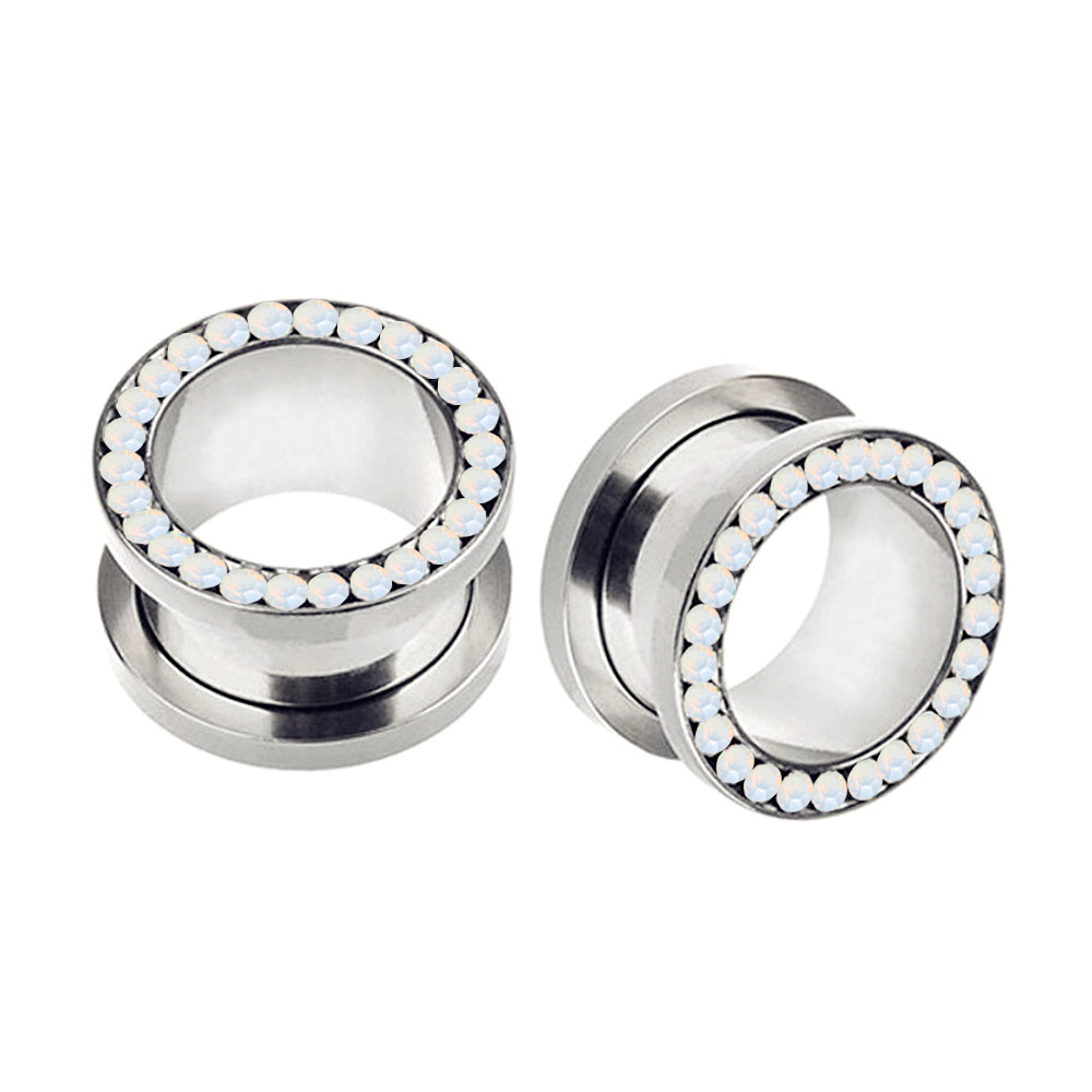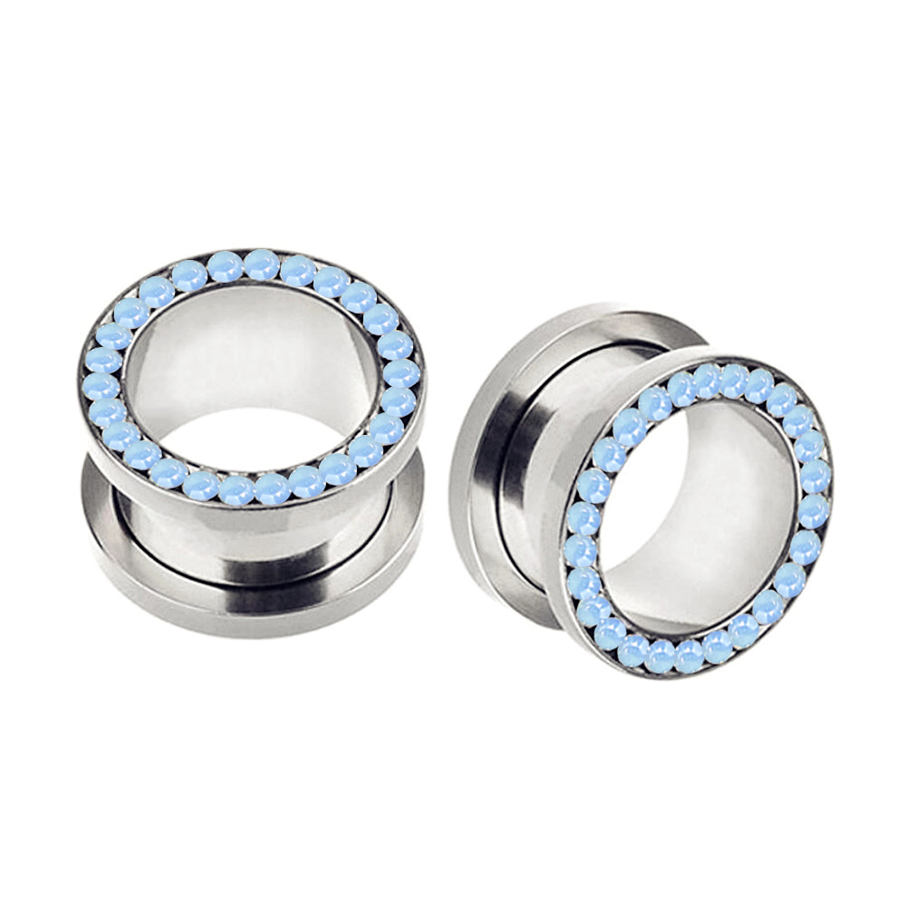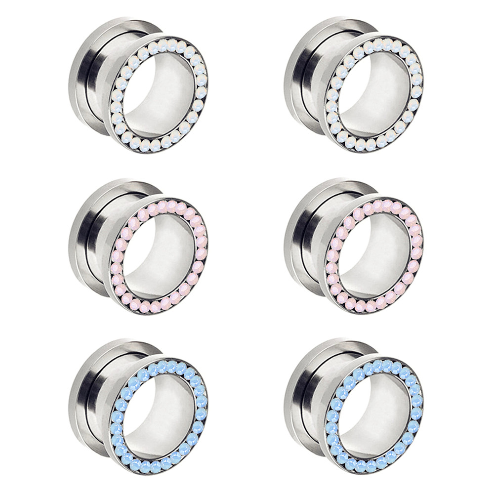 Pair Multi Opalite Steel Ear Plug Flesh Tunnel Flared Screw Fit Gauge Expander