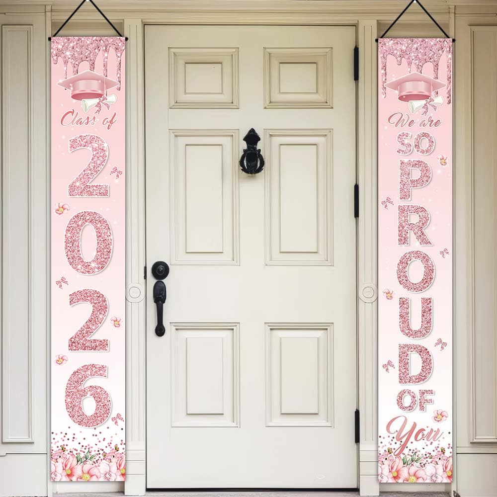- Product Size: The pink congrats grad set includes 2 pieces of porch signs. This rose gold class of 2026 graduation backdrop for photoshoot measures 72 x 12 inches perfectly fit your porch decorations