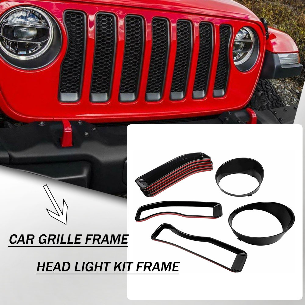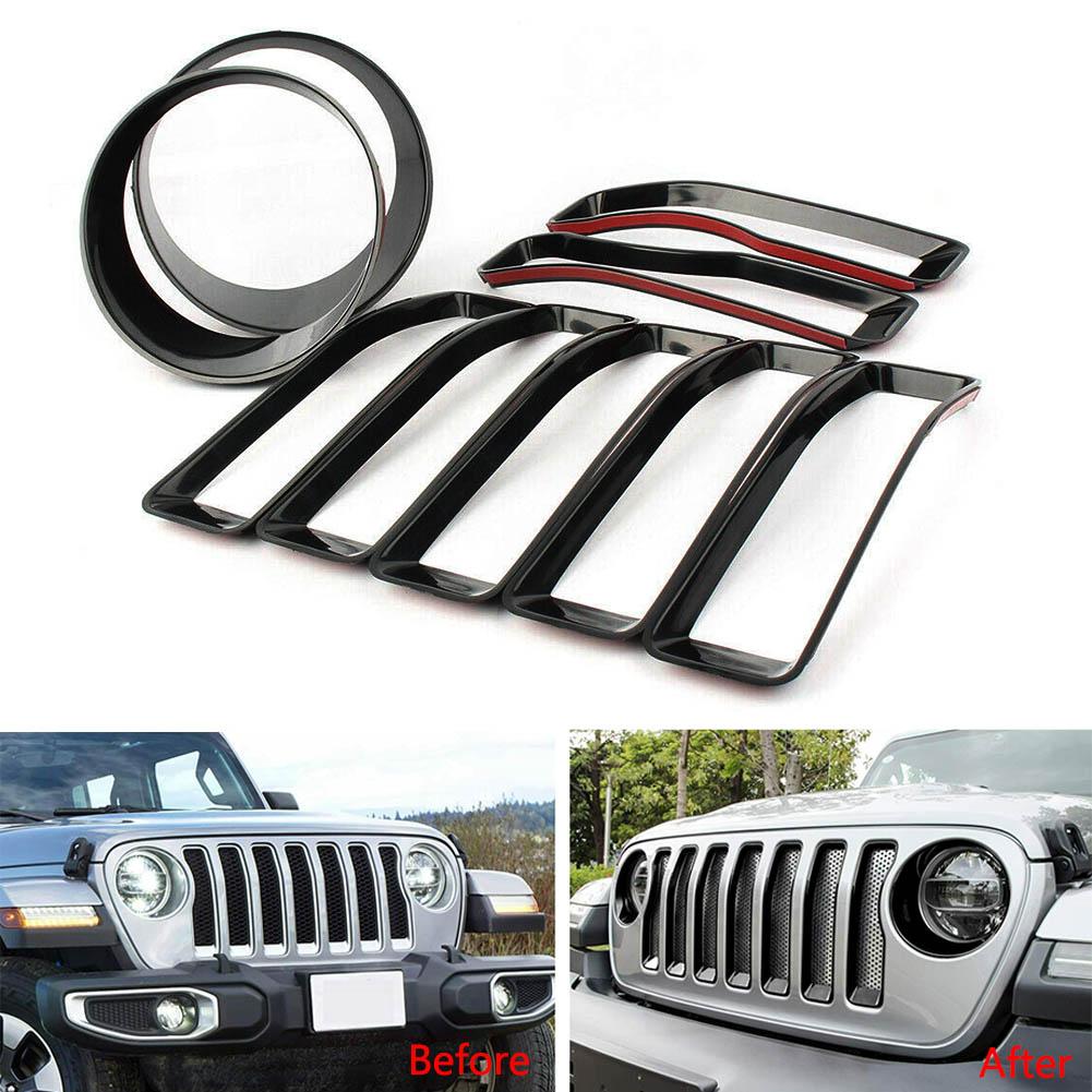 9X Front Grille Inserts & Headlight Cover Trim for Jeep Wrangler JL Sahara 2018+