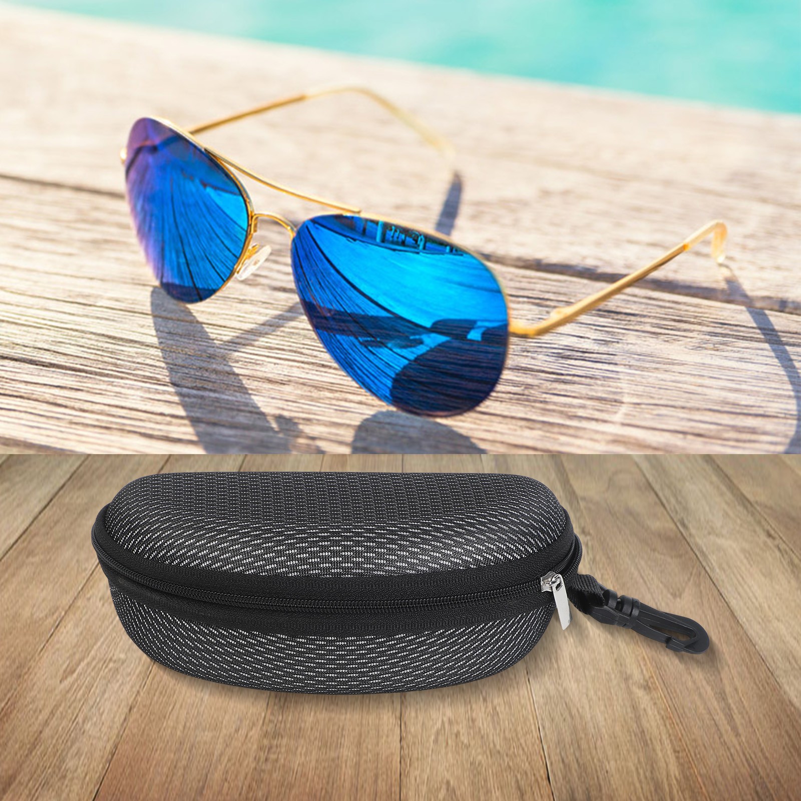 * Boîte EVA, bonne qualité, pour forte résistance à la pression, facile à pour transporter avec des crochets, adaptée pour tous types de lunettes de soleil