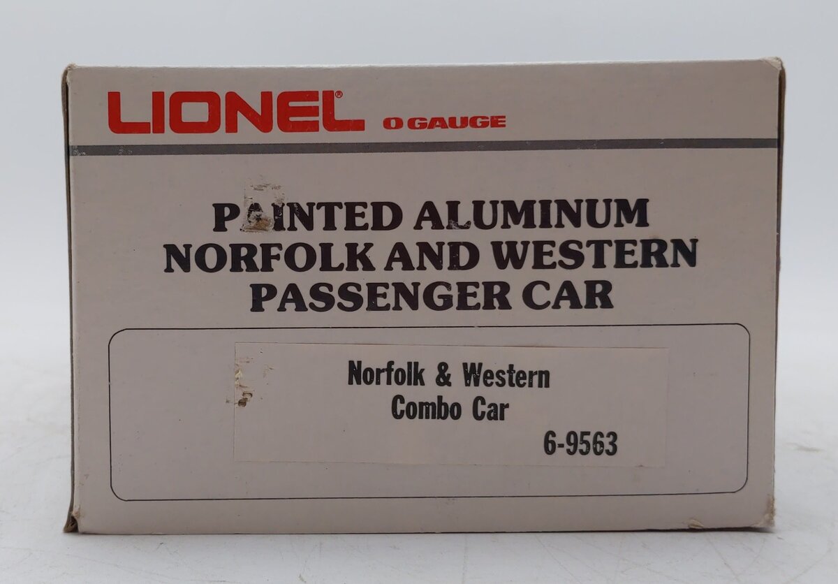 Here is a Lionel 6-9563 O Gauge Norfolk & Western Aluminum Combo Car #578 from 1981. This car is from the famous Norfolk & Western Powhatan Arrow set from that year. It features an aluminum body, an illuminated interior with passenger silhouetted windows, die-cast trucks with operating metal couplers, and it is 15 inches long.