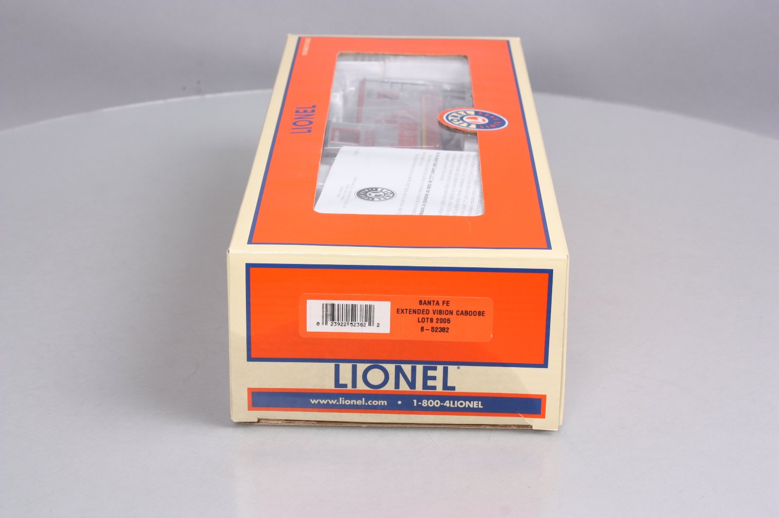 This is a Lionel 6-52382 O Gauge Santa Fe Extended Vision Illuminated Caboose #2505 from 2005. This car features interior illumination, die-cast metal sprung trucks, die-cast metal operating knuckle couplers, smoke unit, metal wheels and axles.