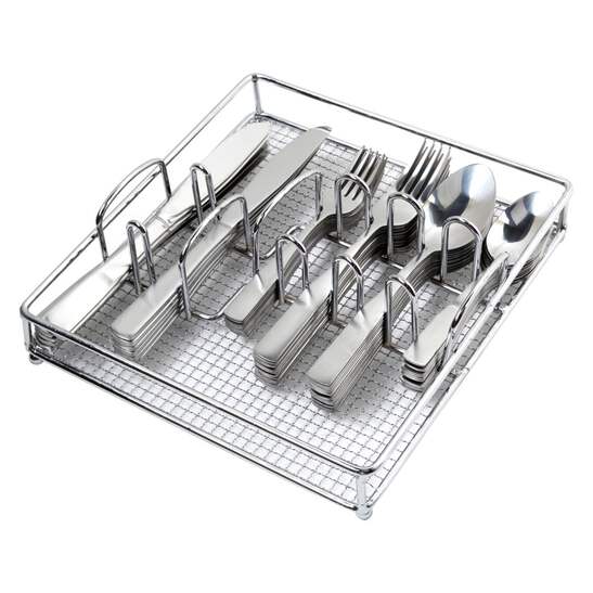 The Abbeville 61 Piece Flatware Set by Gibson Home is an absolute must-have in any household. This stylish set aligns simplicity with elegant design. It comes fully complete to serve up to 12 people, making it an ideal for entertaining guests and hosting parties. The high quality stainless steel will withstand corrosion and stains for long lasting mirror polish flatware. It conveniently comes with a wire mesh tray for ultimate functionality with added flair.
