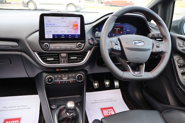 LKM Motor Company Presents 2022 Ford Fiesta ST-3 (Performance Pack) Top Spec • Performance Hatch • Immaculate Example Vehicle Overview •Model: Ford Fiesta ST-3 (Performance Pack) •Year: 2022 •Engine: 1.5T EcoBoost Petrol - 200ps •Transmission: 6-Speed Manual •Mileage: Only 33,000 miles •Colour: Magnetic Grey •Condition: Immaculate Throughout •Service History: Full Service History •Keys: 2 •Price: £17,490 - Low Rate Finance Available Exterior & Styling •Finished in Magnetic Grey •Sporty ST Styling with aggressive stance •Opening Panoramic Roof - Rare & desirable option Interior & Comfort •Ford Performance Sports Seats - Supportive & Sporty •Winter Pack - Heated Front Seats & Heated Steering Wheel •Premium ST Interior with driver-focused layout Technology & Features •SYNC 3 with Satellite Navigation •B&O Premium Sound System - Exceptional audio quality •Rear View Camera - Easy parking •Bluetooth Connectivity & DAB Radio Performance & Driving •1.5 EcoBoost Turbo Engine - 200ps •ST Performance Pack - Enhanced handling & driving dynamics •Engaging manual gearbox for true hot hatch experience Why Buy This Fiesta ST-3? This Fiesta ST-3 represents one of the best modern hot hatches on the market. With its Performance Pack, panoramic roof and premium B&O sound system, it offers an incredible mix of performance, technology and everyday usability. Presented in immaculate condition with full service history, its ready to be enjoyed. Low Rate 0% Deposit Finance options available - contact us today to discuss a tailored finance package! • Call now to book a viewing! • Visit our showroom to see this stunning sporty hatch in person! Finance Options Available! Top Part Exchange Prices! Please get in touch for further details our number is / opt 4 or you can send us an email to ..Winter Pack, Opening Panorama Roof, B&O Premium Sound System, SYNC 3 with Navigation, Rear View Camera, 18in Alloy Wheels - 5-Spoke with Magnetite Finish, 6-Way Manual Driver Seat with Lumbar Adjustment, 6-Way Manual Passenger Seat with Lumbar Adjustment, Air Conditioning - Electronic Automatic Temperature Control - EATC, Airbags - Driver and Front Passenger, Airbags - Front Side Impact, Airbags - Side Curtain, Anti-Lock Braking System - ABS with Electronic Brake Force Distribution - EBD, Automatic Rain Sensing Wipers and Auto-Dimming Rear View Mirror, Black Belt Line Finisher, Black Interior Headlining, Body Colour Bumpers, Cargo Area Cover, Centre Console - Premium with Openable Stowage Area with USB Connectivity - 2 Cupholders and 12v Power Point, Courtesy Light - Front LED with Map-reading Light, Cruise Control includes Speed Limiter and Intelligent Speed Assistance, Door Handles - Body Colour, Door Lever - Chrome Finish, Door Mirrors - Heated - Electric - Integrated Side Indicators - Body Coloured, EPAS - Electric Power Assisted Steering, Electric Windows - Rear, Electrically-Operated Front Windows with One Touch Drivers, Emergency Brake Warning - Automatic Hazard Warning Lights, Enhanced Electronic Stability Control - ESC with Traction Control - Emergency Brake Assist - EBA - Hill Start Assist - HSA and Trailer Sway Control, Exhaust - Dual Chrome Finish, Floor Mats - Front and Rear, Ford Easy-Fuel Capless Refuelling System, Ford Key Free System - Keyless Entry with Keyless Start, Ford Performance Sports Seats, Front Fog Lamps with Cornering Lights, Full Digital 12.3in Instrument Cluster, Headlights - Automatic, IPS - Intelligent Protection System, Interior Ambient LED Lighting, Lane-Keeping Aid with Lane-Keeping Assist, Large Rear Spoiler - Body Colour with Centre High Mounted Stop Light, Leather Handbrake Lever with Grey Stitching, Locking Wheel Nuts, Matrix LED Headlights with Signature LED Daytime Running Lights and Integrated Sequential Indicator, Overhead Console - Sunglasses Holder, Parking Distance Sensors - Rear, Quickclear Heated Windscreen, Rear Fog Lamps, Rear Lights - LED, Rear Privacy Glass, Rear Seat - 60-40 Split Back and Cushion, Rear View Camera, Red Brake Calipers, Remote Central-Double Locking, ST 3-Spoke Leather-trimmed Steering Wheel with Metal Grey Stitching, ST Badge - Rear, ST Performance Pack, SYNC 3 with Navigation, Seat Belts with Blue Detailing, Seats - ISOFIX Mounting Provision for Child Seats, Selectable Drive Modes,