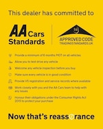 All our cars come with a free 12 months parts & labour warranty & free 12 months AA breakdown cover. The warranty cover is nationwide (any garage can carry out the repairs to the vehicle) with the highest level cover of £1000 per claim (standard industry cover level is only £250) with unlimited claims and with no mileage restriction. We can extend the cover to 2 years for only £195.