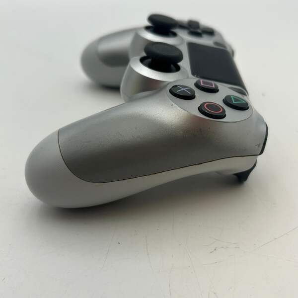 Offered is a Sony PS4 CUH-ZCT2U video game controller in silver. This controller has been tested by GamePad.com and is noted to have stick drift. It is being listed as broken and is best suited for repair, parts, or other non-fully functional use. The charging USB cable is not included.