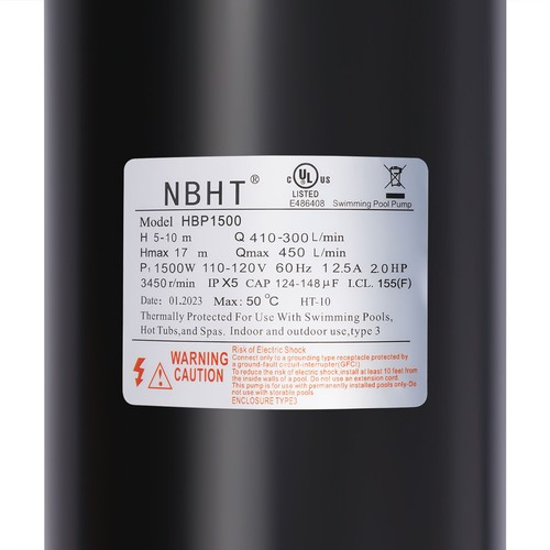 High Efficiency: the 1500w Pure Copper Motor with 2hp and High Rotation Speed (3450r/Min), Efficient Impeller, and Airflow Ventilation Make This Pump Produce a High Flow Rate (118.8gpm) to Quickly&Smoothly Filter the Circulating Water and Keep the Swimming Pool Clean While Conserving Energy.