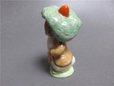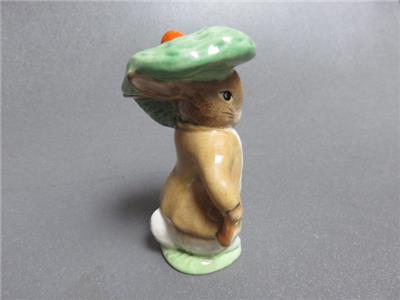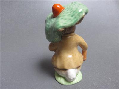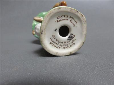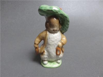 This beautiful porcelain figurine of Beatrix Potter's Benjamin Bunny is a cute figurine from the bunnykins family. Made in the UK in 1948 by Frederick Warne, it is a classic piece of art. Its small size of 4.25" makes it perfect for any room, and its multicolor design will enhance your collection The figurine is in excellent condition and is a wonderful addition to the Beatrix Potter collection. The rabbit theme is adorable, and the fine details of the figurine are impressive. This figurine is perfect for all occasions and makes a great gift for any fan of Beatrix Potter's work. from the Peter Rabbit series.. 4 pieces for sale in all.. no tariffs for Canadians but a small amount is added in the handling for the USA