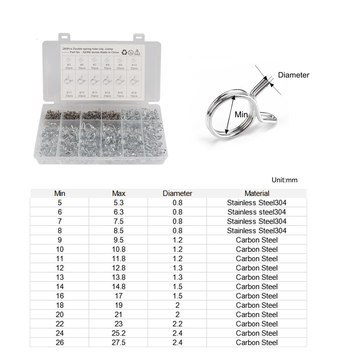 285PCS 5-18mm Car Hose Clamps Assortment Spring Clip Water Fuel Tube Air Pipe