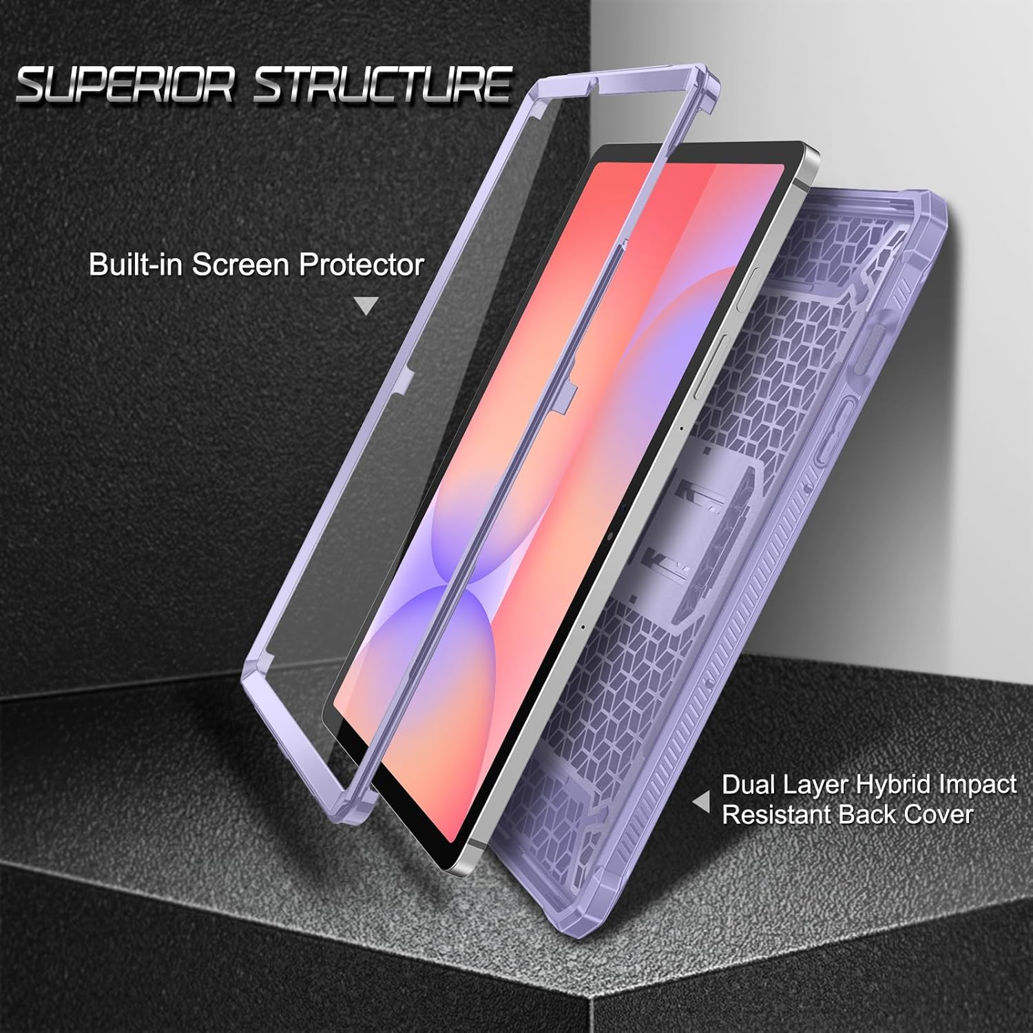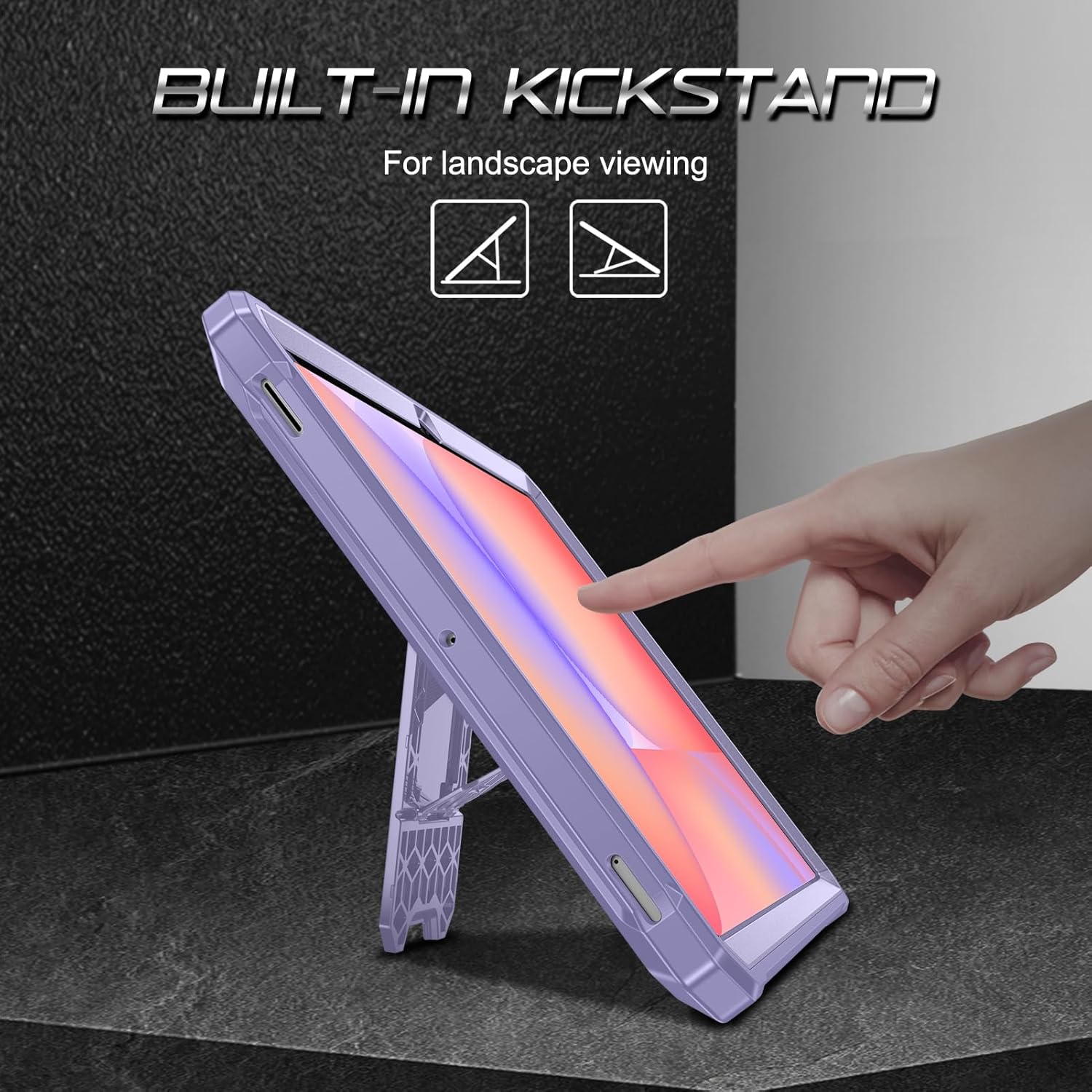 Shockproof Case for Samsung Galaxy Tab S10 Lite/ S10 FE/ S9 FE 5G 10.9 Inch/Tab S9 11 Inch, Tuatara Rugged Unibody Hybrid Bumper Kickstand Cover Built-in Screen Protector, Purple