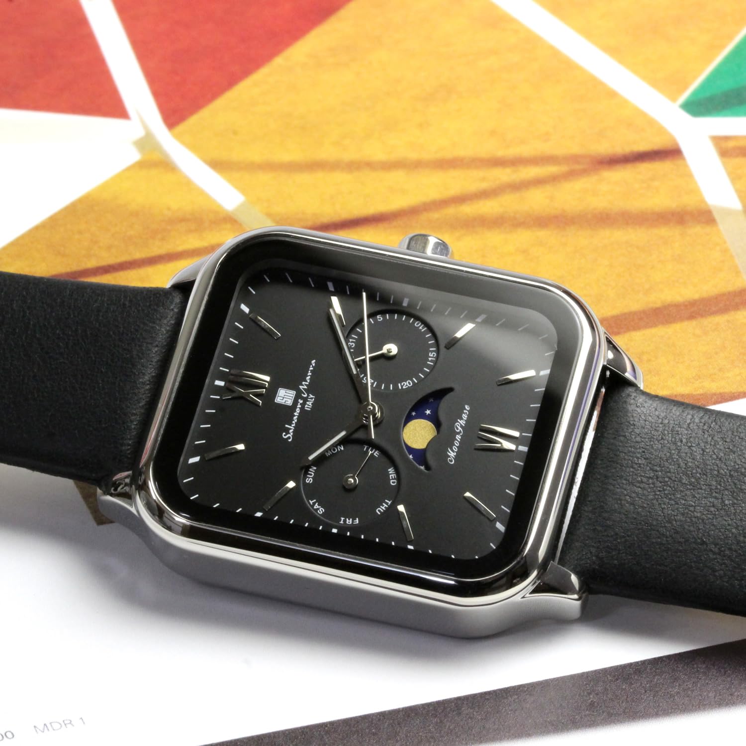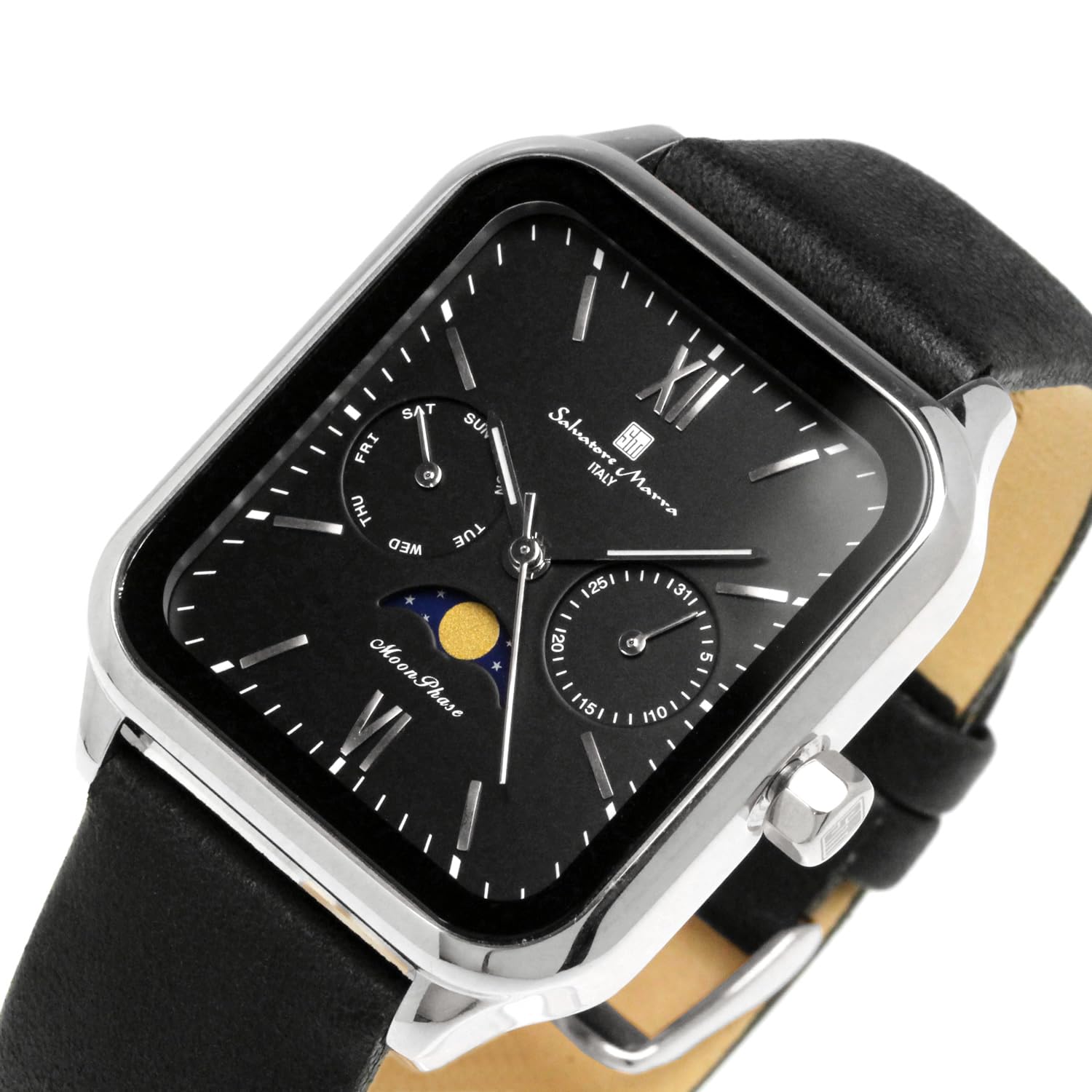 Salvatore Marra Men's Square Moon Phase Watch with Multi-Calendar, Water Resista
