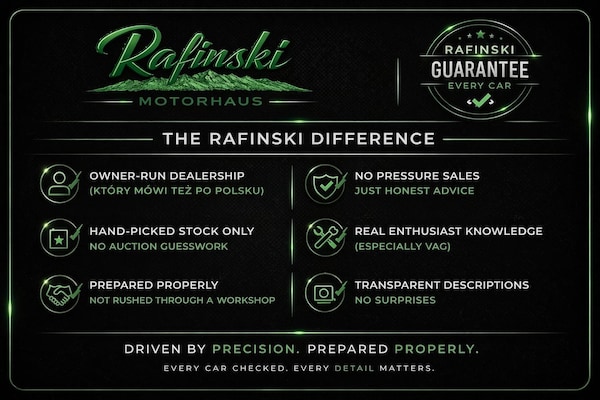 Rafinski Motorhaus is an independent specialist dealer based in Peterborough. Every vehicle is personally sourced and prepared by the owner, who has experience from Audi, Volkswagen and Land Rover dealer networks as well as large car supermarkets. Our focus is simple: quality cars, honest descriptions and a straightforward buying experience. We work with customers across the UK and welcome all languages including Polish speaking buyers. Finance, part exchange, delivery and vehicle sourcing available. Mowimy po Polsku.