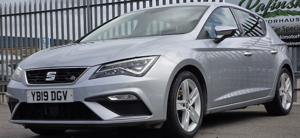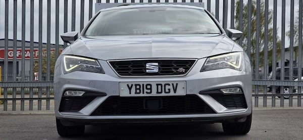 2019 SEAT Leon 1.5 TSI EVO FR manual in silver with full service history, nav, Apple CarPlay, Android Auto, LED lights, parking sensors and two keys.