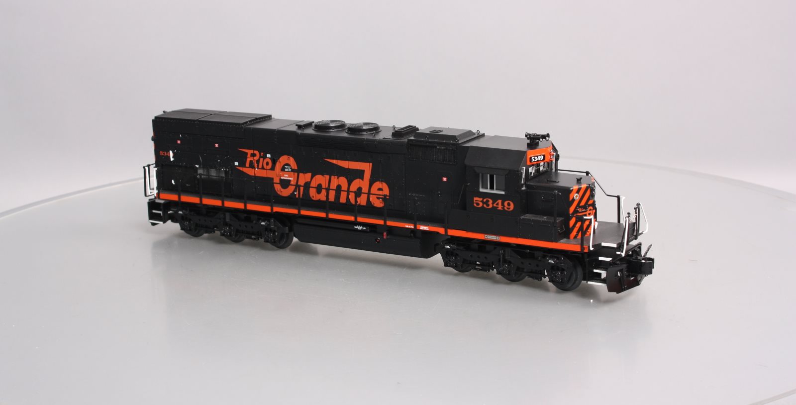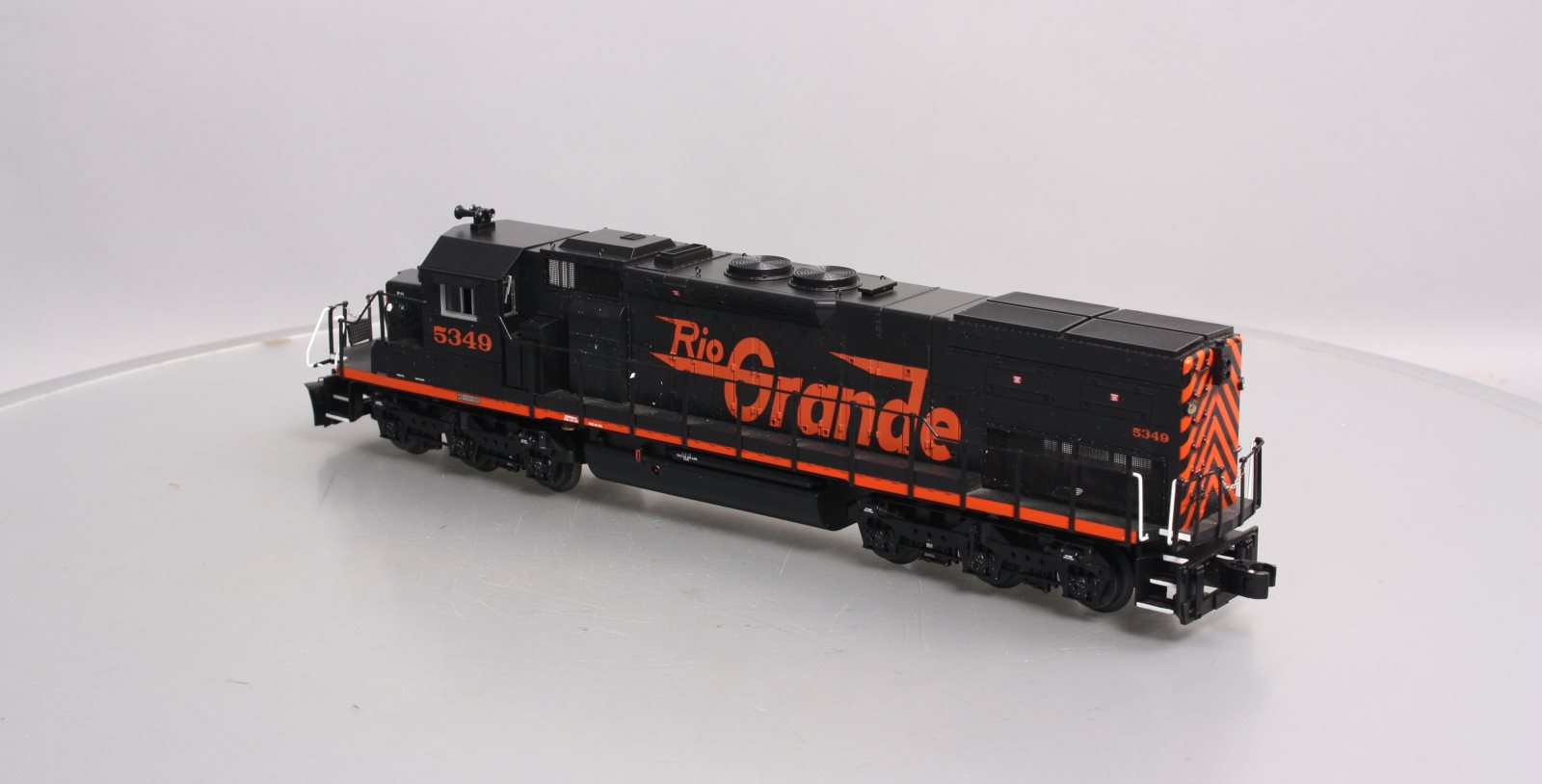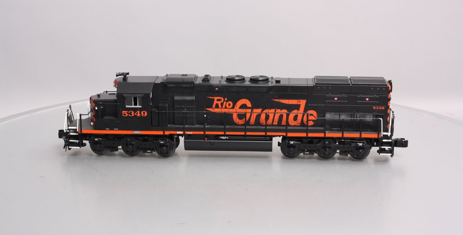 Here is a Lionel 6-28248 O Rio Grande SD40T-2 Diesel Locomotive #5349 (Non-Powered). Features include Die-cast metal trucks, pilots, and fuel tanks, Front and rear operating couplers, Gauge: Standard O, Minimum Curve: O-31, Dimensions: Length: 17 inches, RailLine: Rio Grande.